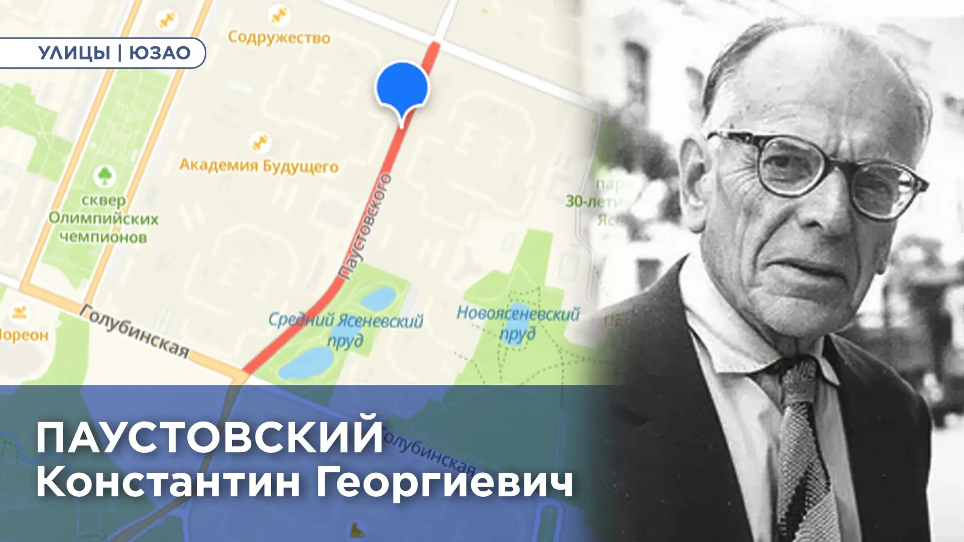 Сегодня улица Паустовского — это зелёный уголок на юго-западе Москвы. С одной стороны — Битцевский парк, с другой — Ясеневские пруды. Здесь нет громких памятников, только тихие дома, вода и деревья — идеальный пейзаж для писателя, который умел находить поэзию в самых обыкновенных вещах.