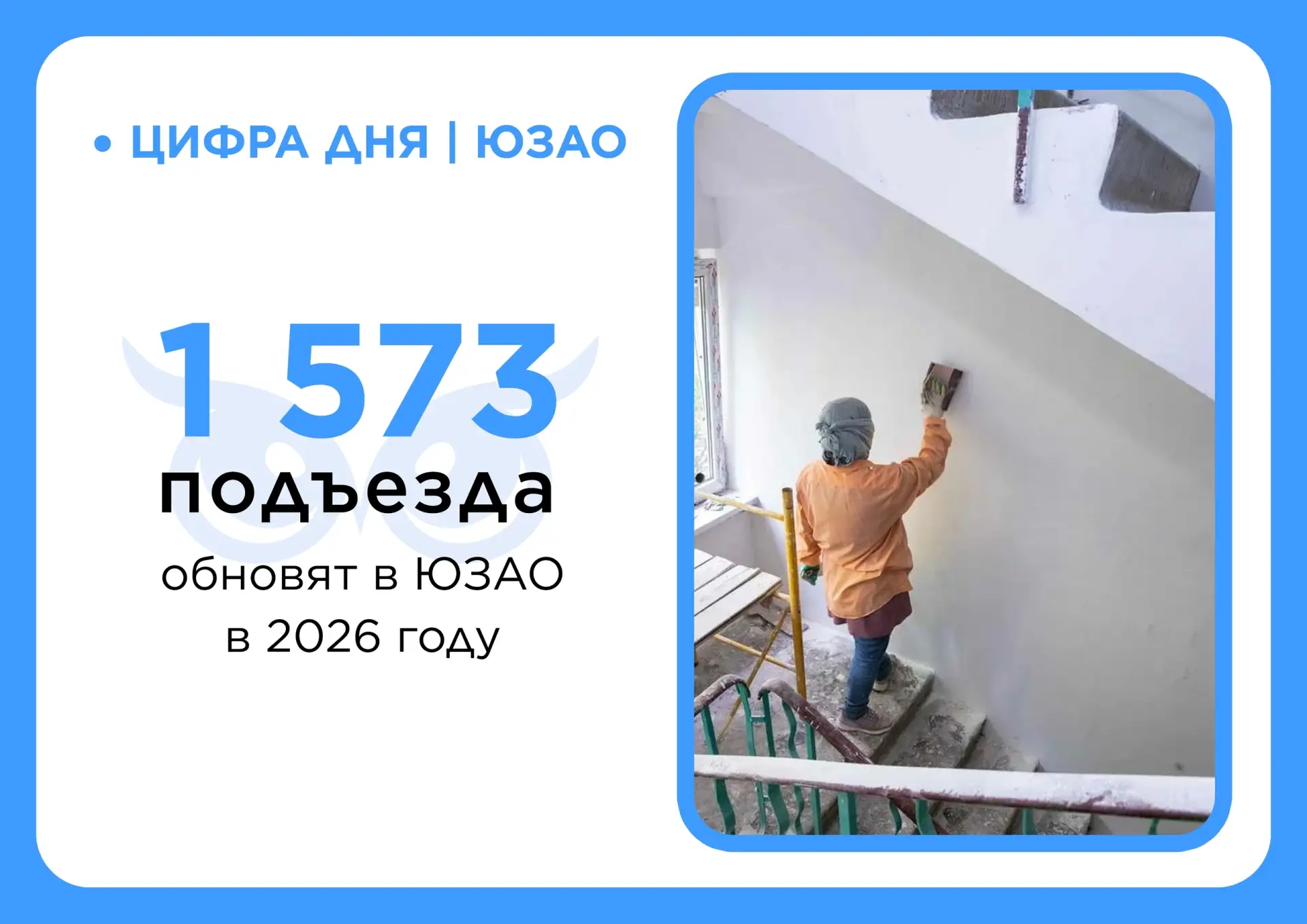Повышение качества жизни в ЮЗАО начинается с малого – с ремонта в каждом подъезде. В 2026 году масштабная программа благоустройства мест общего пользования охватит 1 573 подъезда жилых домов округа.