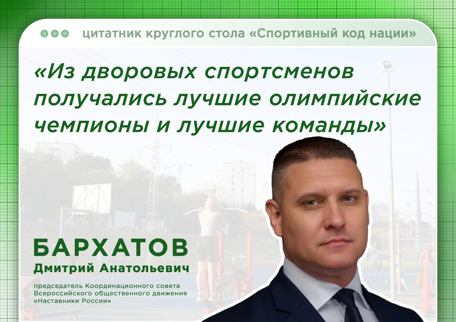 Продолжаем подводить итоги круглого стола: на очереди - выступление председателя Координационного совета движения «Наставники России» Дмитрия Бархатова.