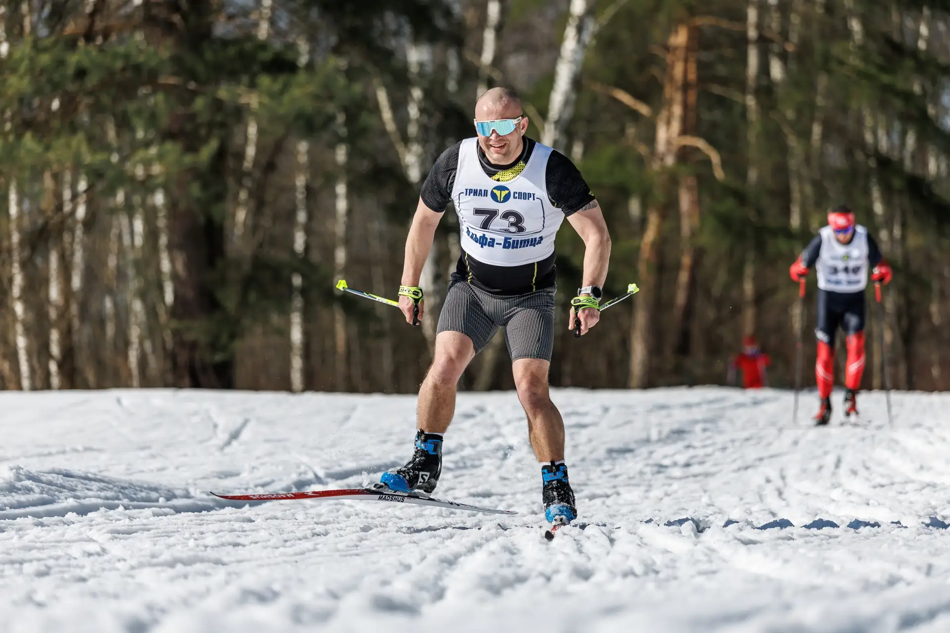 Задавать темп на пятикилометровой дистанции доверили мастеру спорта международного класса по биатлону, восьмикратному чемпиону России Андрею Маковееву. Именно он вел за собой участников на протяжении всего маршрута.