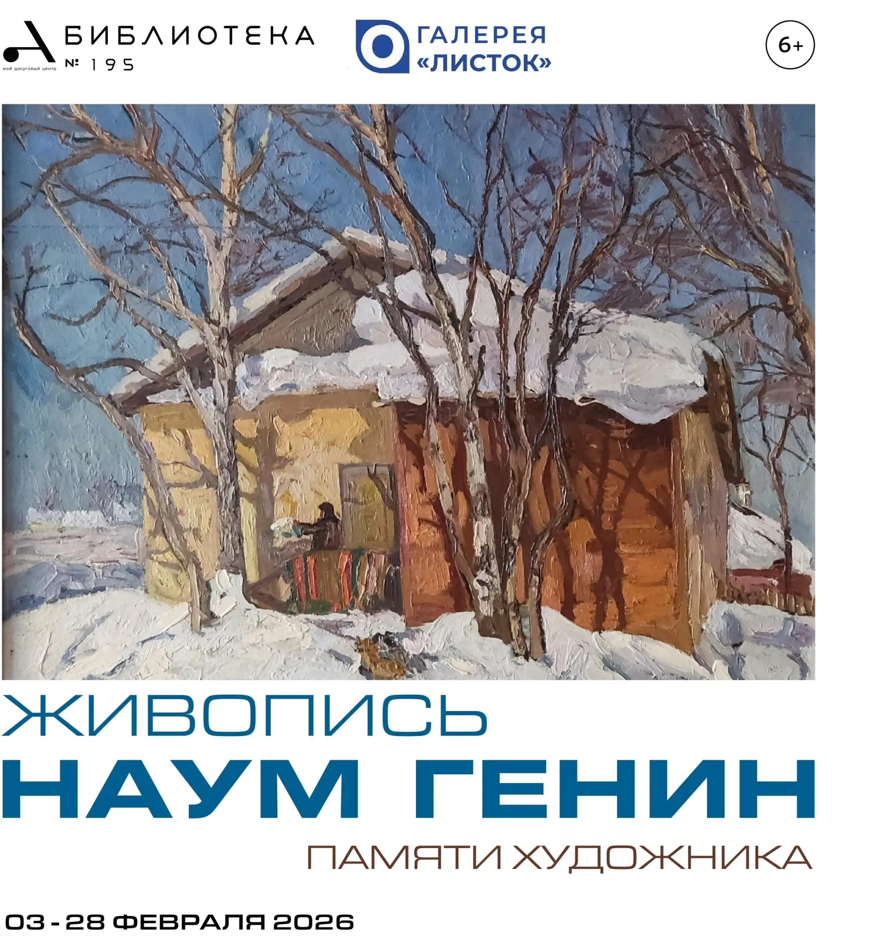 С 3 по 28 февраля 2026 года в Библиотеке №195, в галерее "Листок", расположенной по адресу: ул. Адмирала Лазарева, д. 61, проходит выставка работ выдающегося художника и поэта русского пейзажа Наума Лазаревича Генина. 🖌