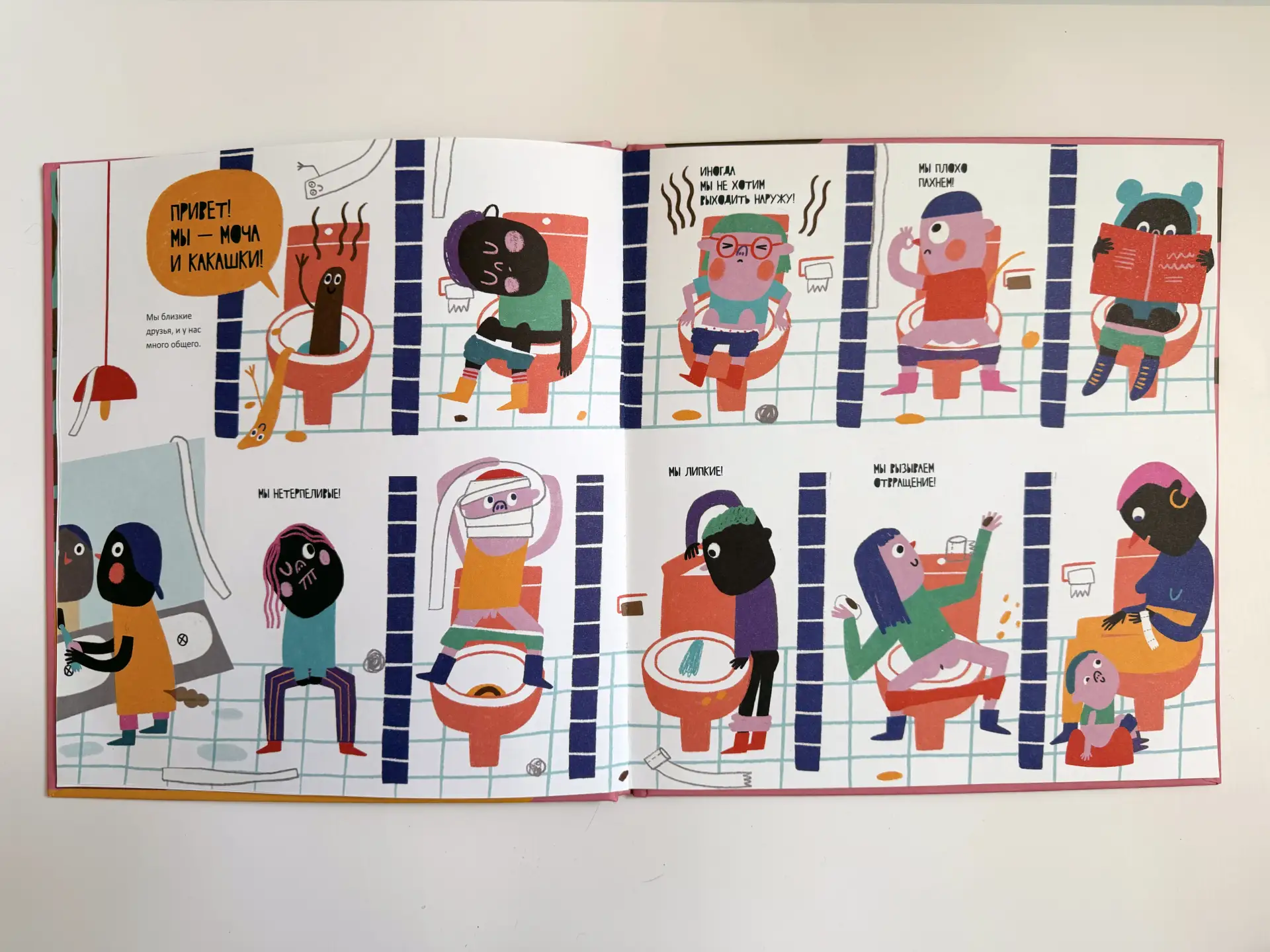 Автор всех книжек — иллюстратор из Барселоны Мариона Толоза Систере. Ее рисунки вроде бы простые, но яркие, ритмичные, остроумные и смелые. Они как бы говорят: да, на эти темы в приличном обществе не говорят, поэтому мы создадим свое общество — с луна-парком и общественными туалетами.