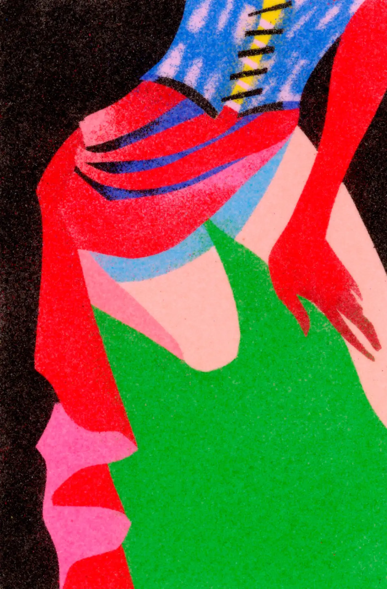 Сырая, неидеальная и очень личная графика — в том числе зин-эстетика, выразительная линия и коллажи. Иллюстраторы снова тянутся к скетчбукам и ручному леттерингу, чтобы выделиться на фоне выглаженных ИИ-картинок.
