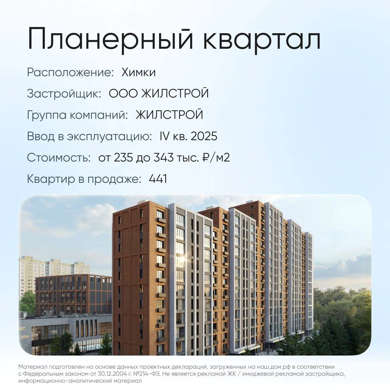 🔸 Планерный квартал — 441 квартир | от 235 до 343 тыс. ₽/м2