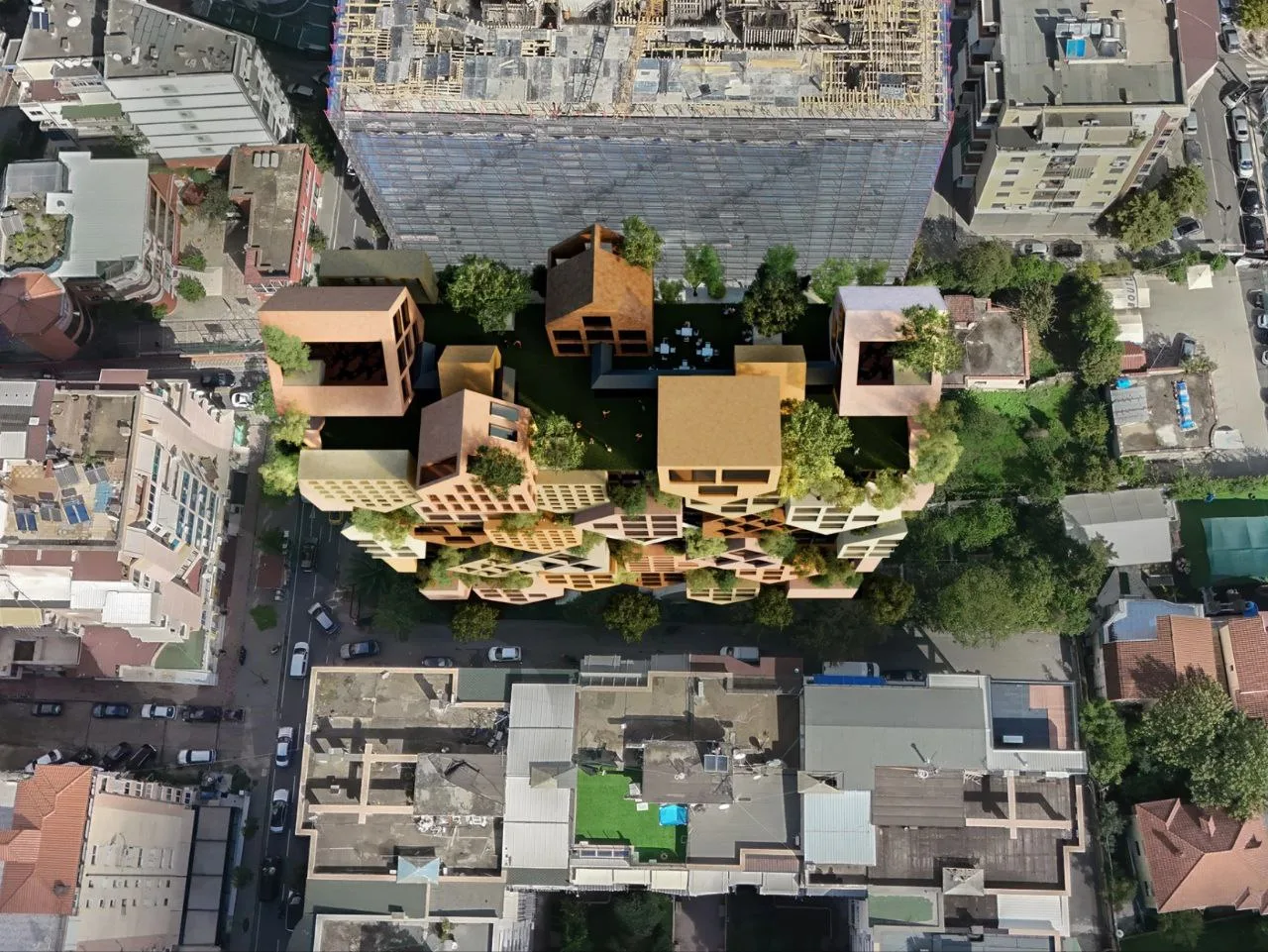 Башня высотой 71 метр будет состоять из пространств-«кубиков», вдохновлённых образом деревенского дома. В самой выступающей части блоки выходят за фасад почти на 3 метра! При этом каждый модуль отличается цветом, ориентацией и планировкой. По задумке архитекторов, здание объединяет два мира: городской и сельский. Как элементы головоломки — разные, но взаимосвязанные.
