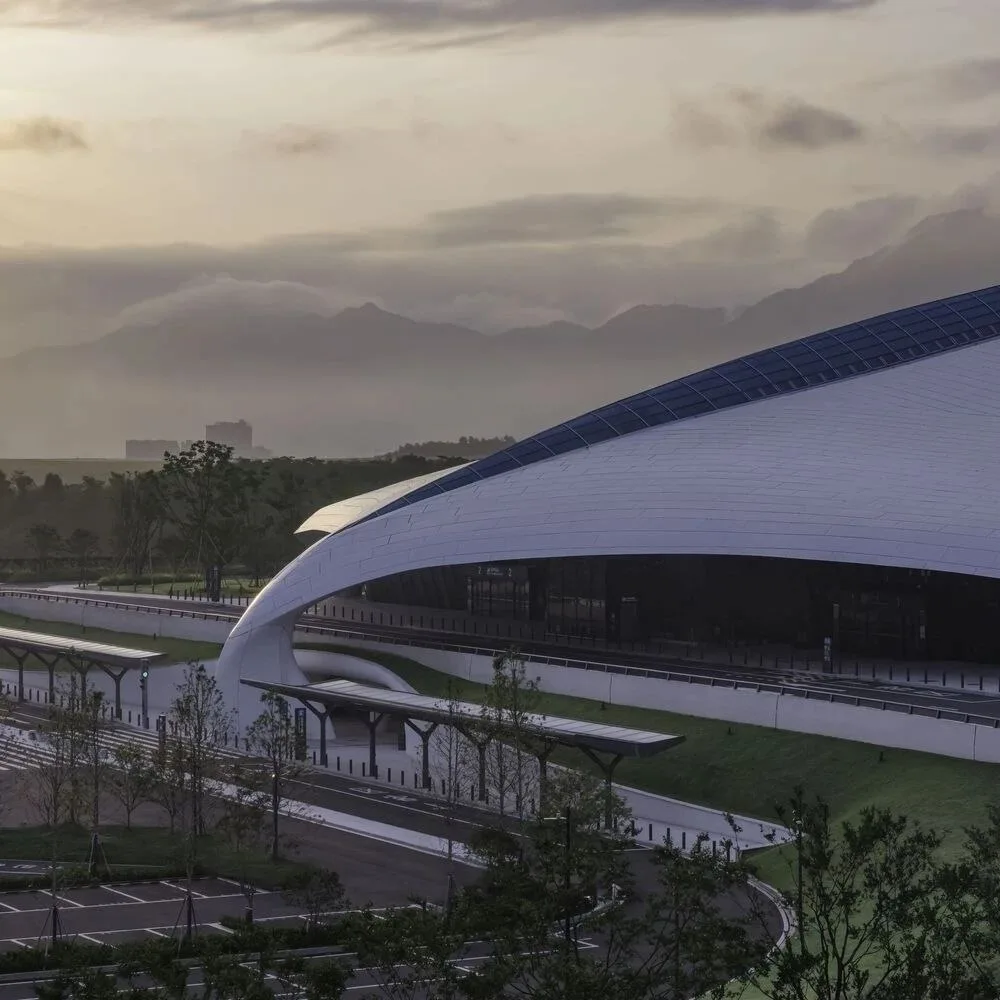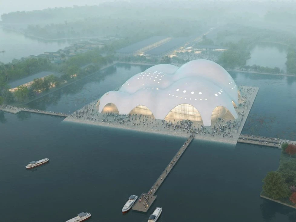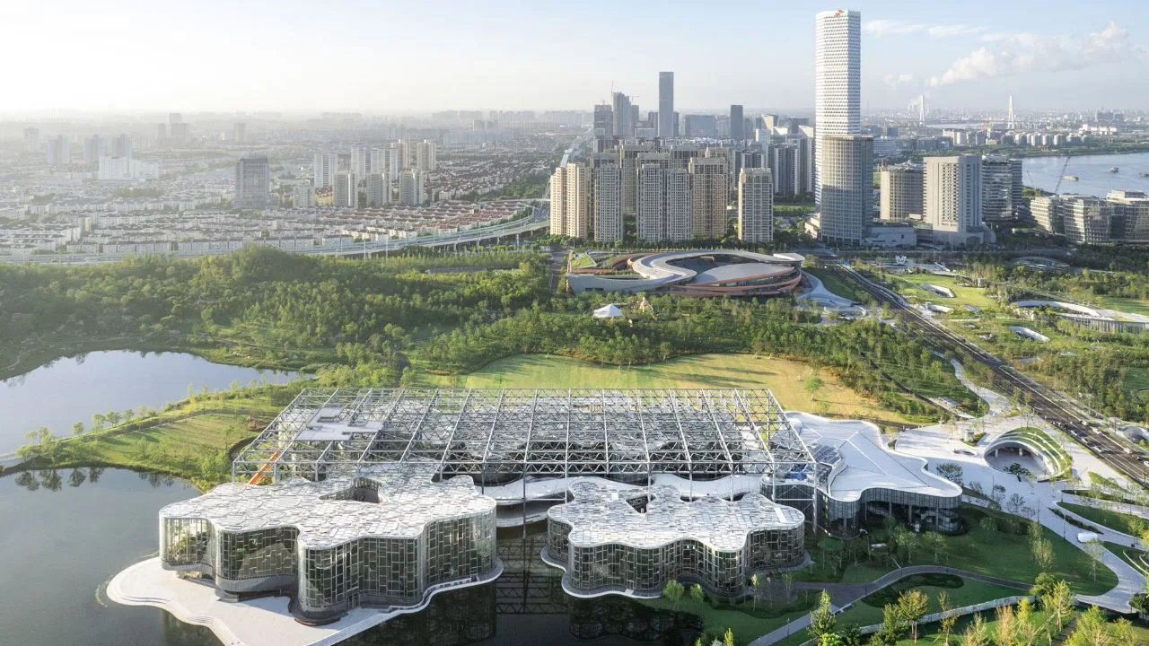Это оранжерея Expo Cultural Park Greenhouse в Шанхае от студии Delugan Meissl Associated Architects. Проект реализован на территории бывшего промышленного участка и стал частью большого культурного парка.