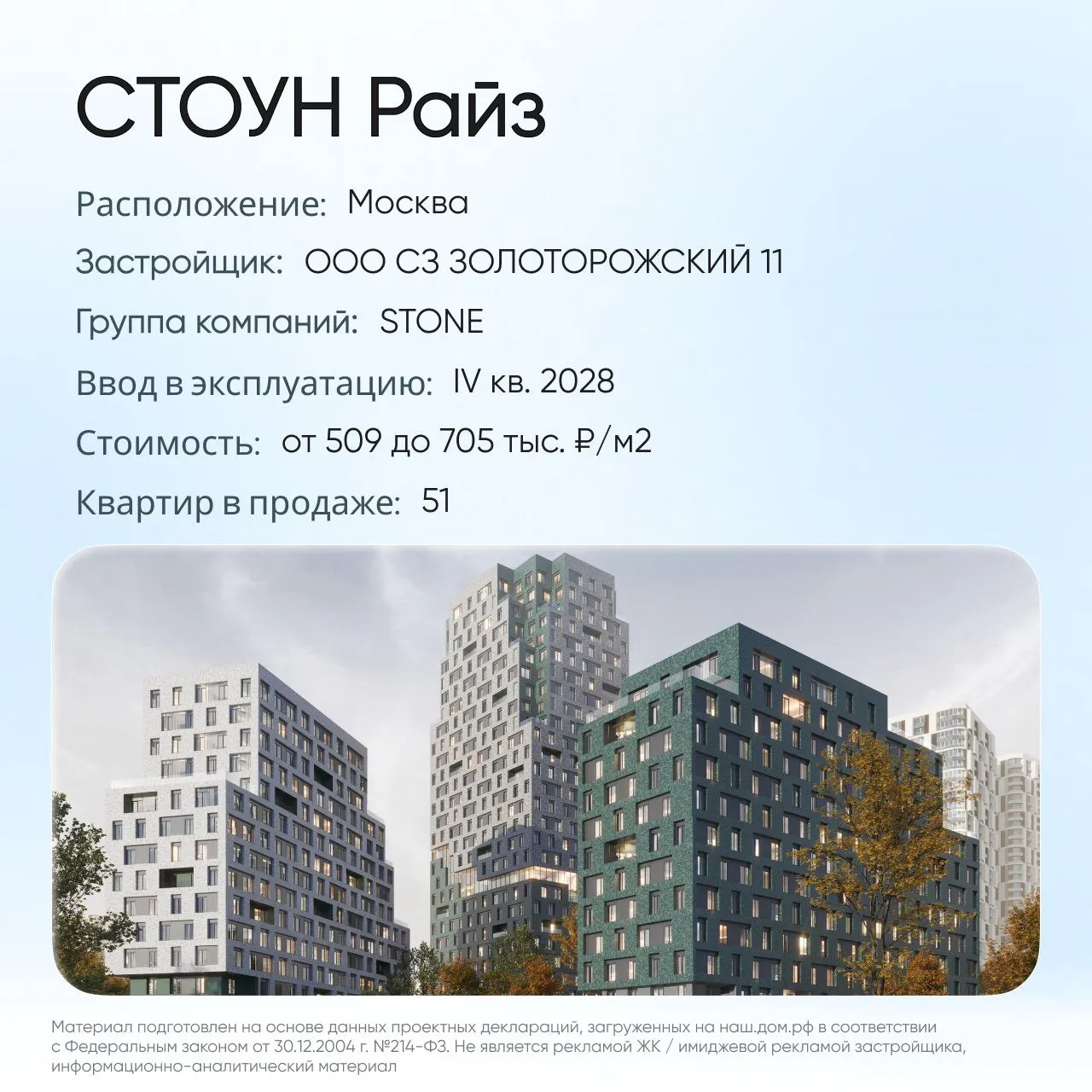 🔸СТОУН Райз — 51 квартира | от 509 до 705 тыс. ₽/м2