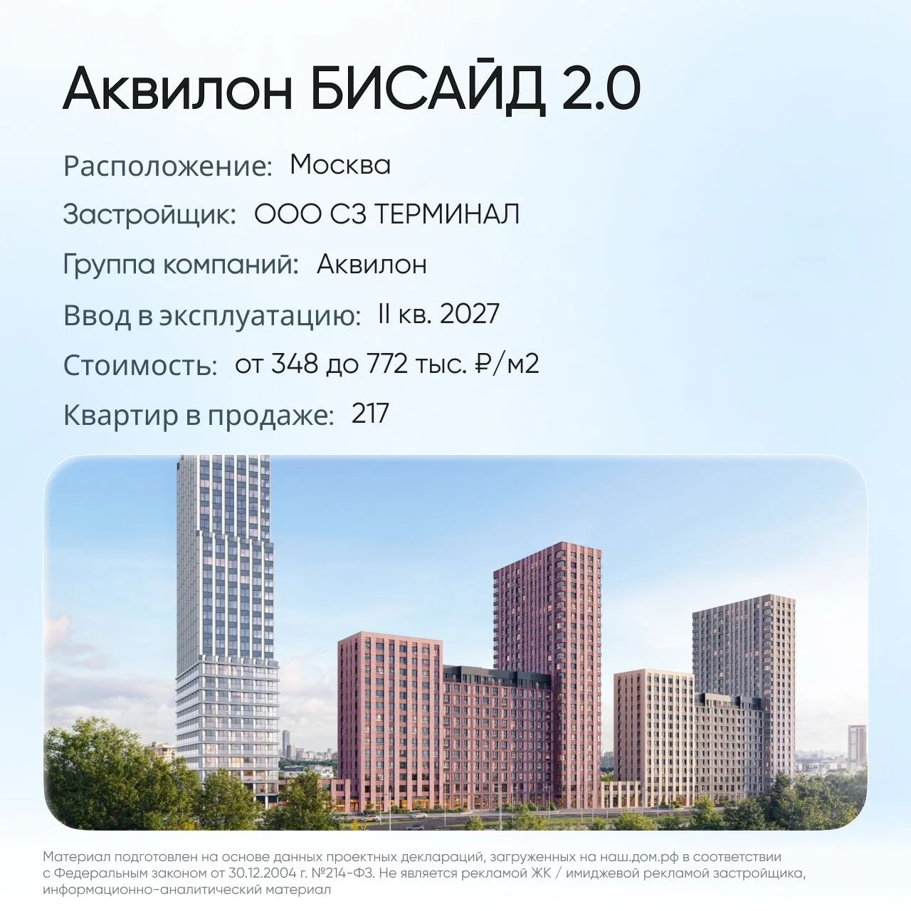 🔸Аквилон БИСАЙД 2.0 — 217 квартир | от 348 до 772 тыс. ₽/м2