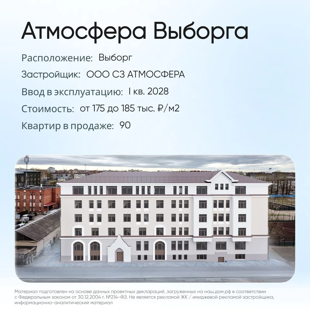 🔸Атмосфера Выборга — 90 квартир | от 175 до 185 тыс. ₽/м2