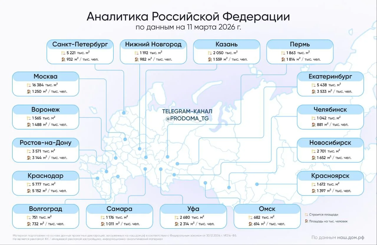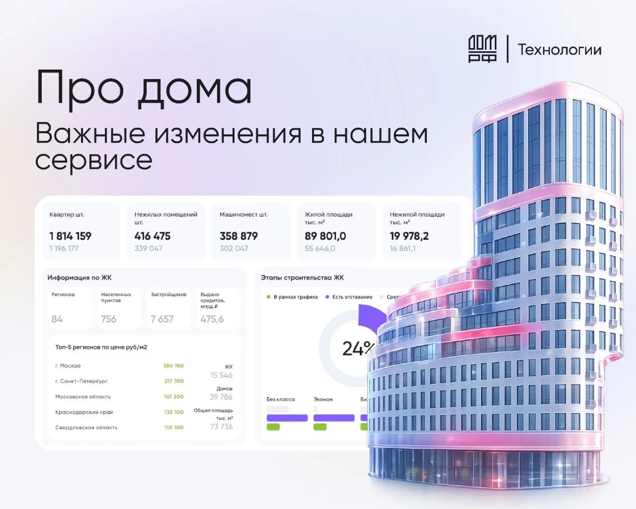🔹 «Про Дома» — аналитика по новостройкам в реальном времени: цены, объёмы строительства и активность конкурентов