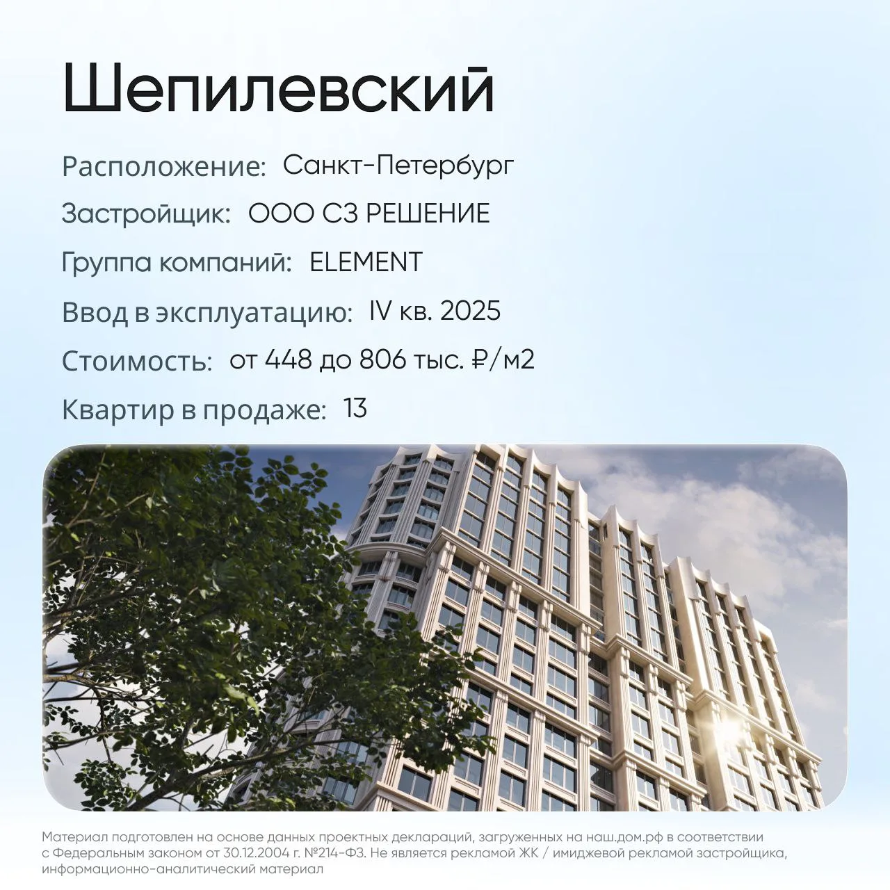 🔸Шепилевский — 13 квартир | от 448 до 806 тыс. ₽/м2
