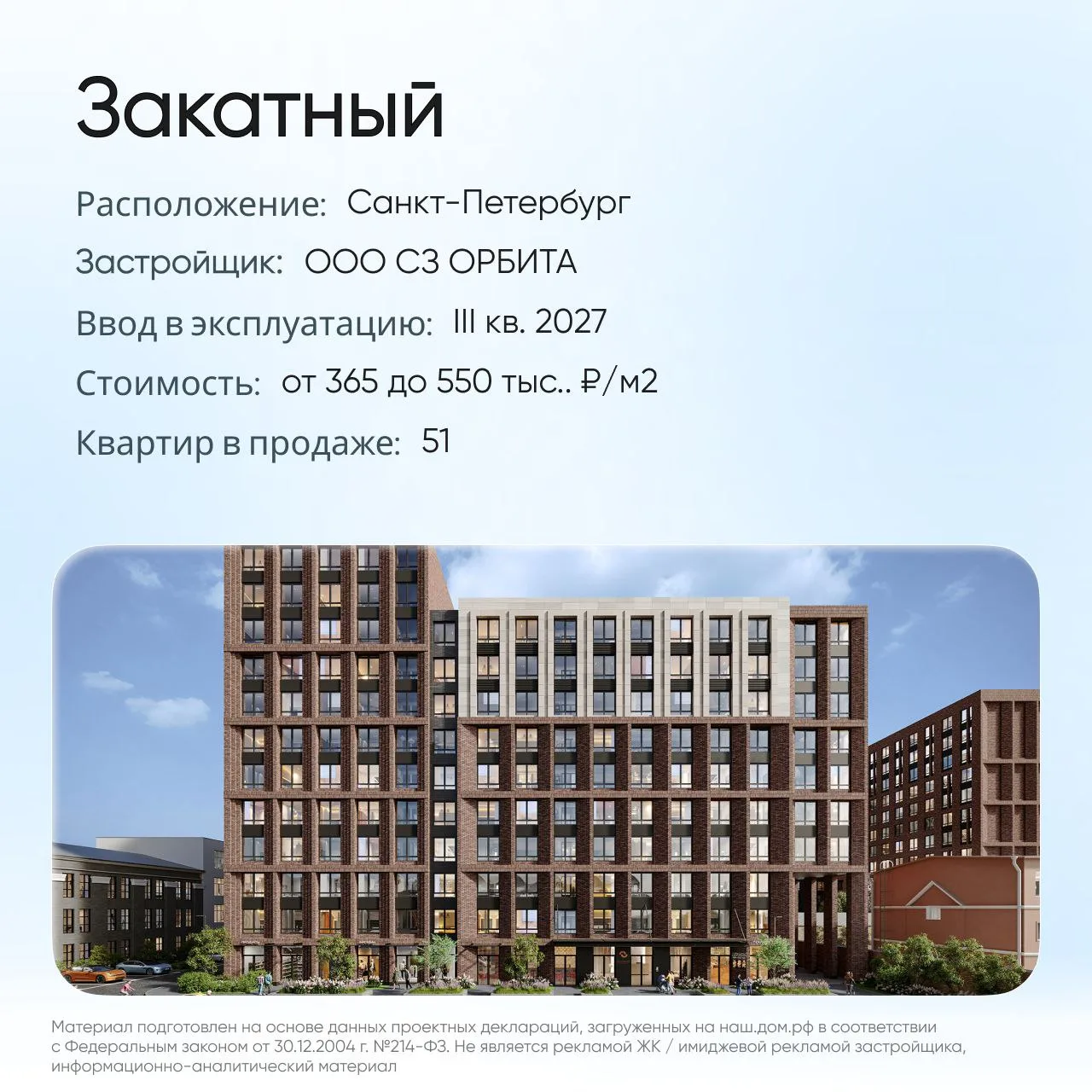🔸Закатный — 51 квартира | от 365 до 550 тыс. ₽/м2