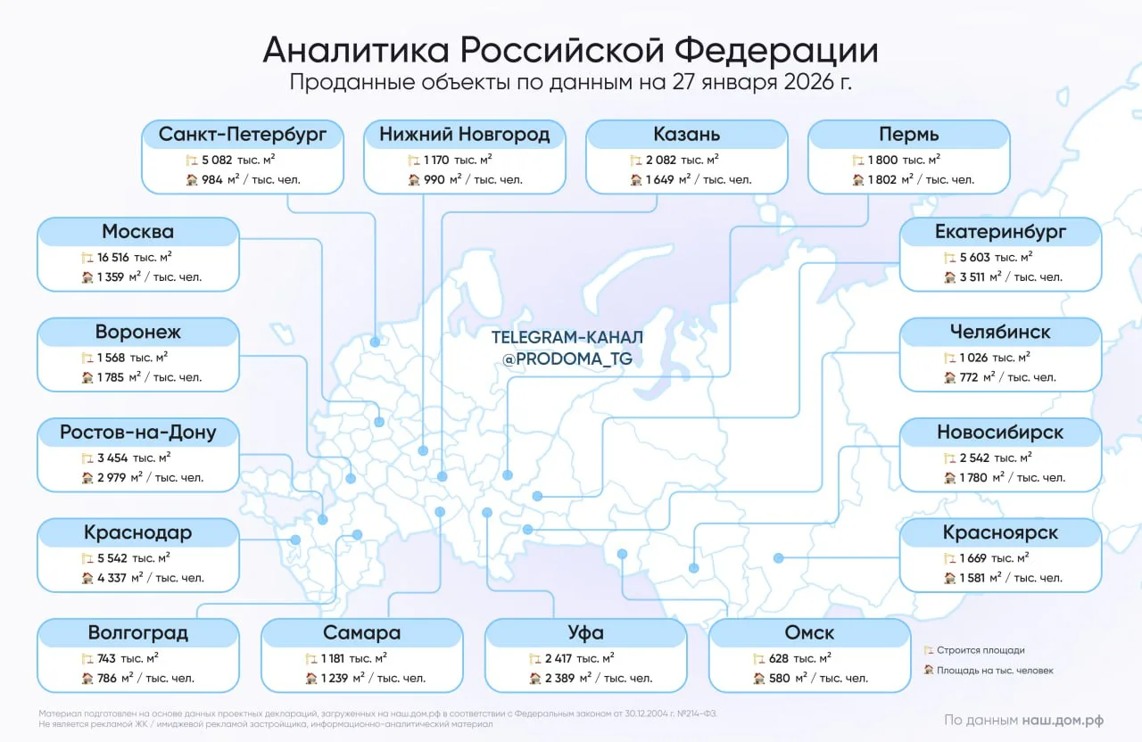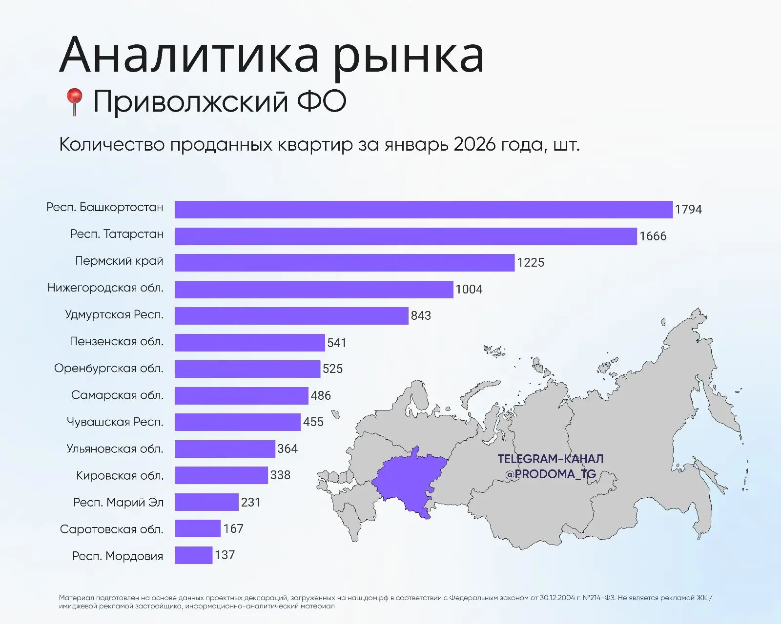 📈 Представляем рейтинг субъектов Приволжского федерального округа по количеству проданных квартир в новостройках за январь 2026 года.