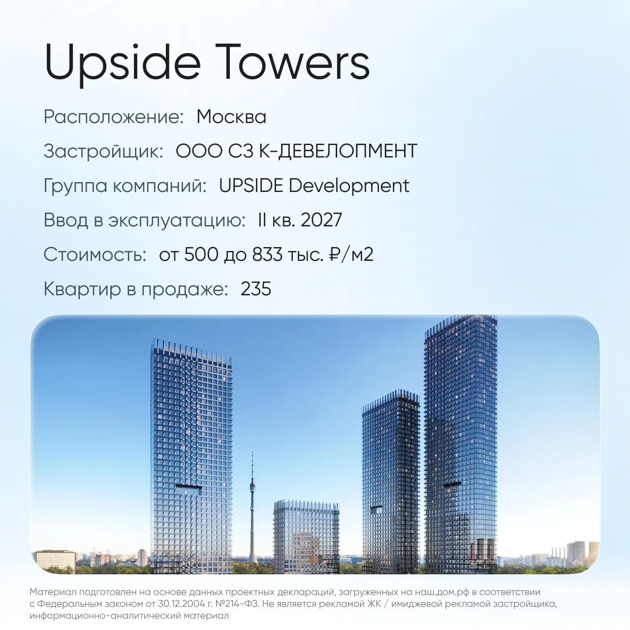 🔸Upside Towers — 235 квартир | от 500 до 833 тыс. ₽/м2