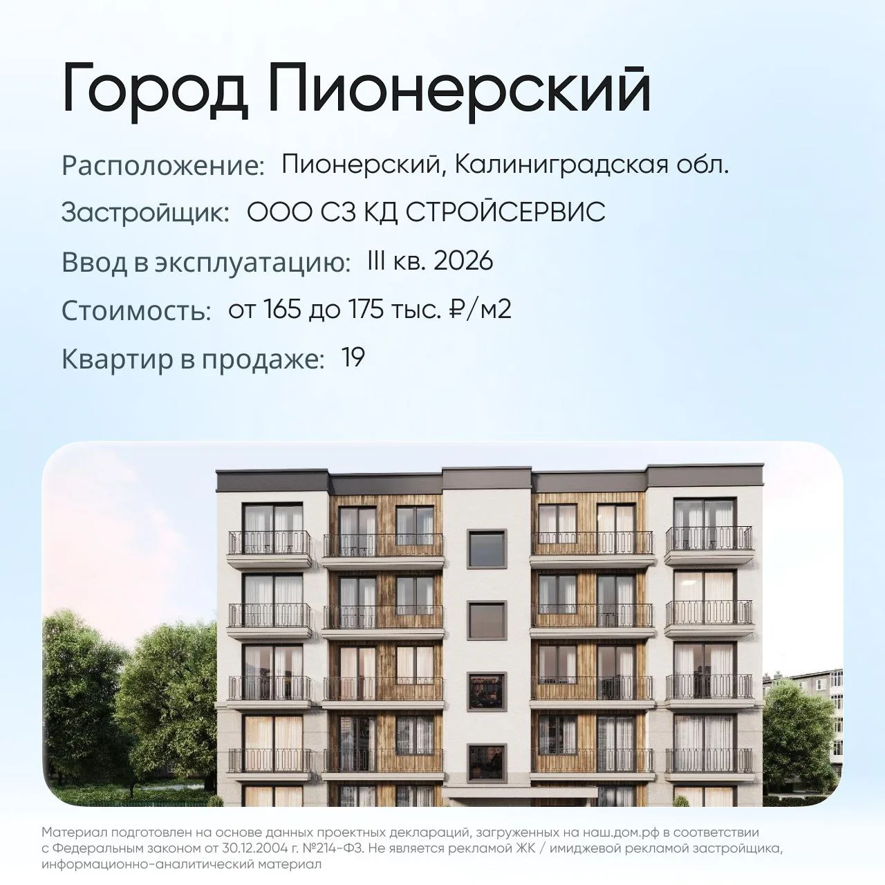 🔸Город Пионерский — 19 квартир | от 165 до 175 тыс. ₽/м2