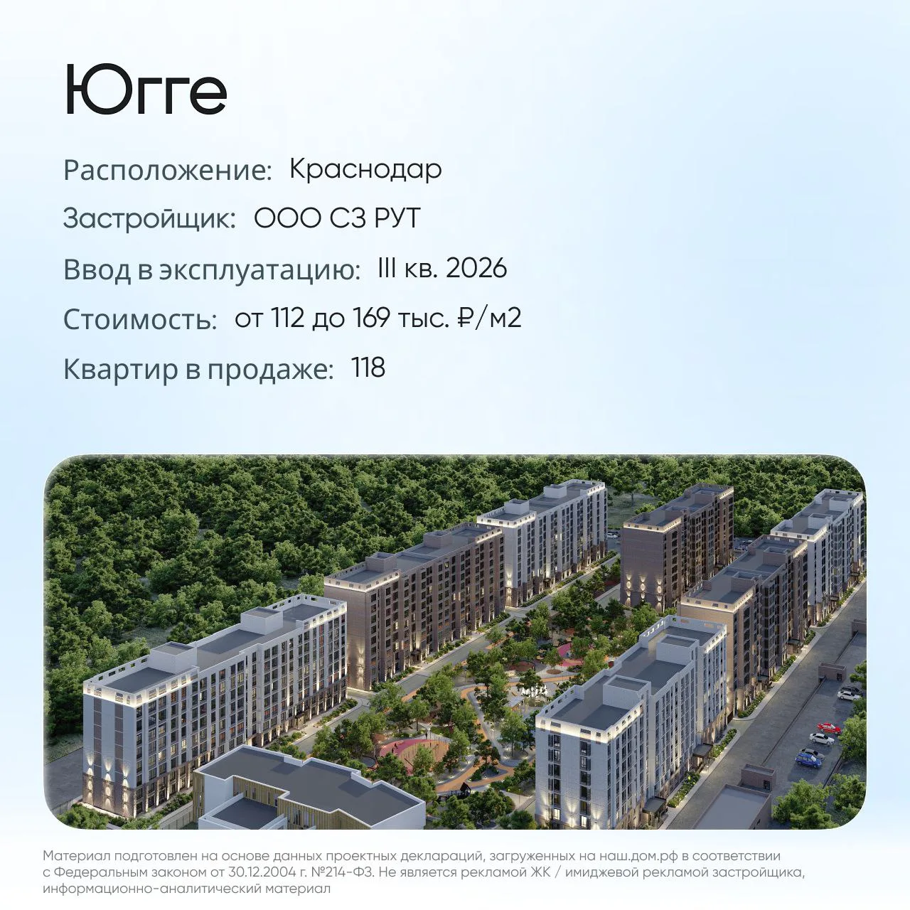 🔸Югге — 118 квартир | от 112 до 169 тыс. ₽/м2