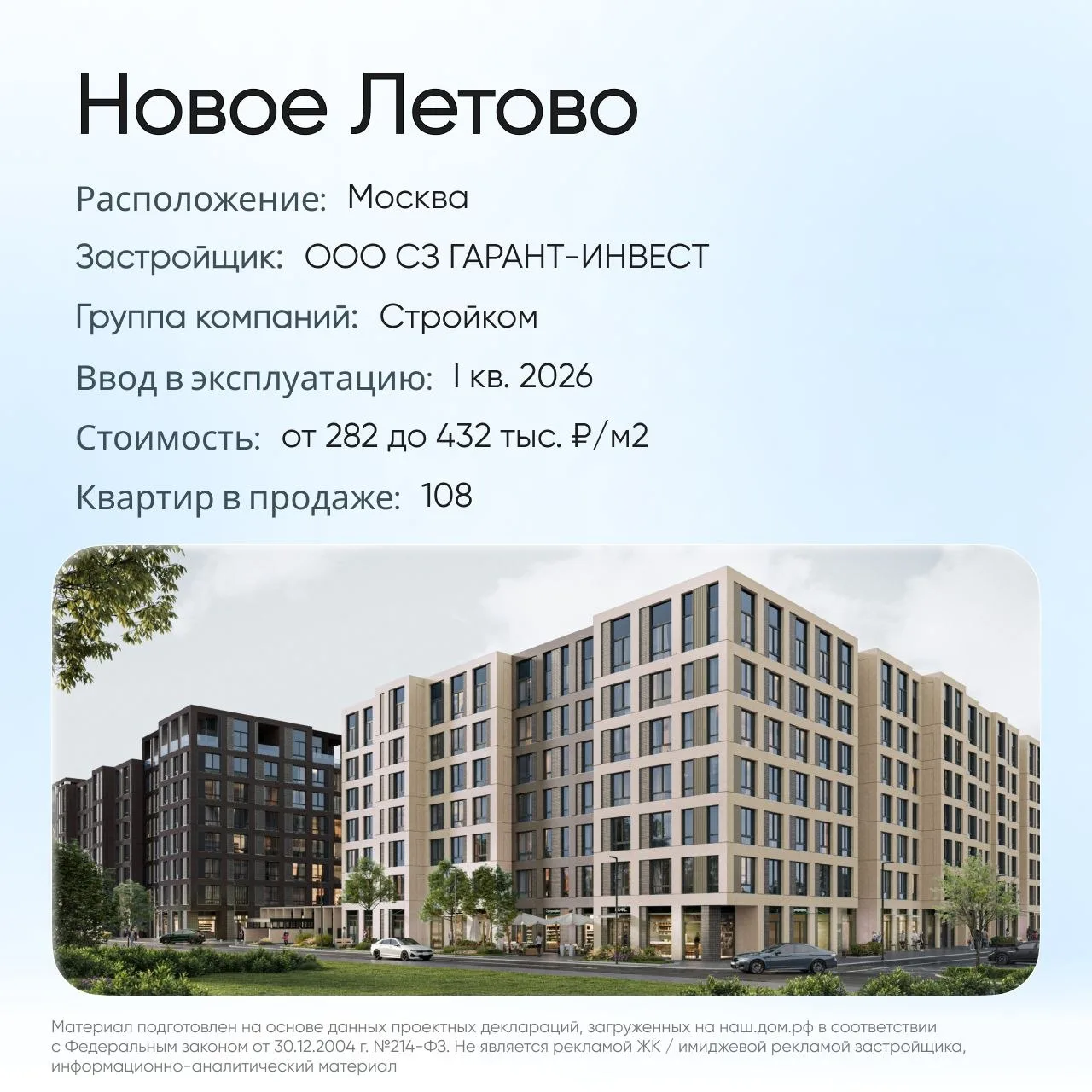 🔸 Новое Летово — 108 квартир | от 282 до 432 тыс. ₽/м2