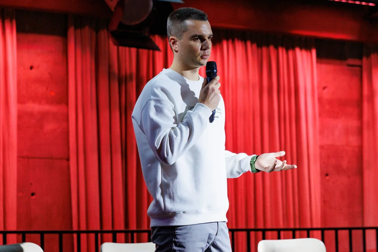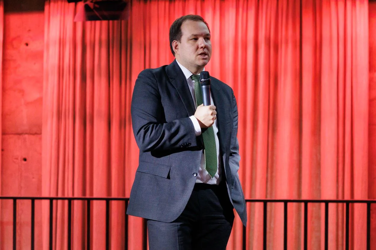 Закрывает мероприятие генеральный директор ДОМ.PФ Технологии Александр Лукьянов с выступление о том, как цифровизация и ИИ меняют строительную отрасль.