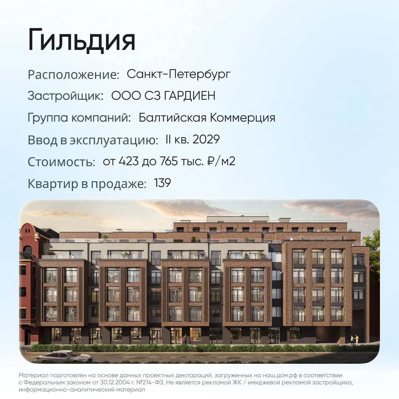 🔸Гильдия — 139 квартир | от 423 до 765 тыс. ₽/м2