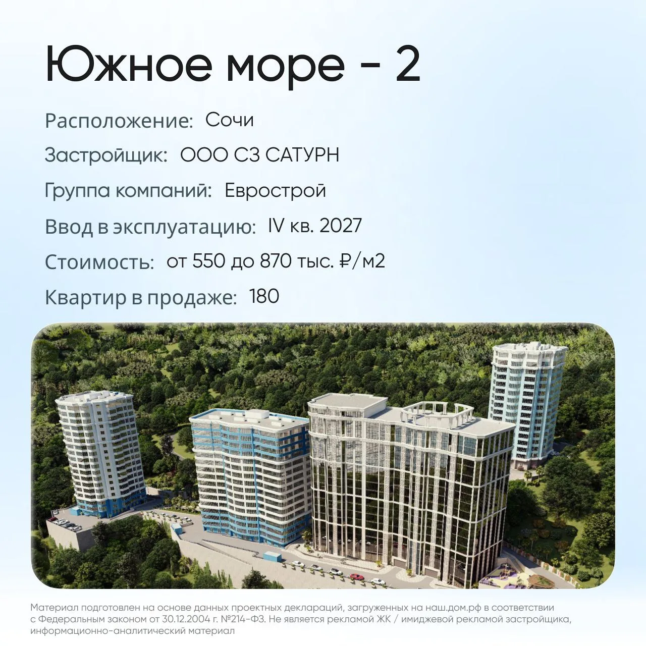🔸Южное море - 2 — 180 квартир | от 550 до 870 тыс. ₽/м2