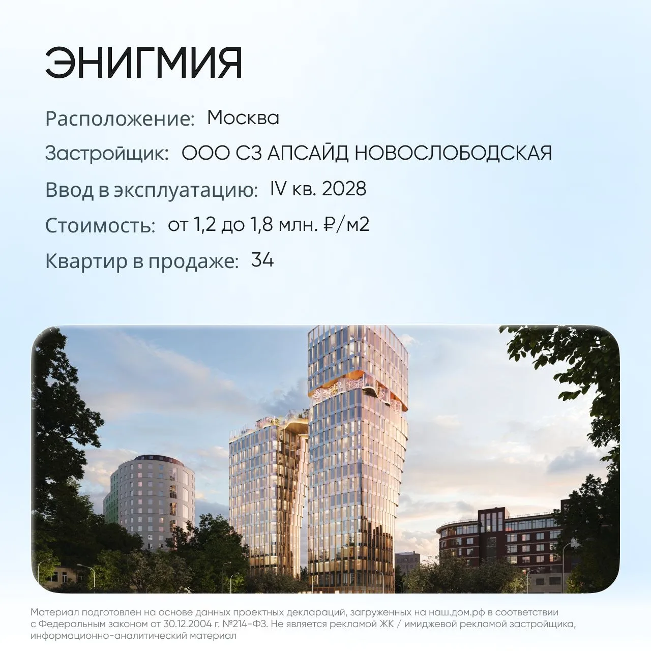 🔸ЭНИГМИЯ — 34 квартиры | от 1,2 до 1,8 млн. ₽/м2