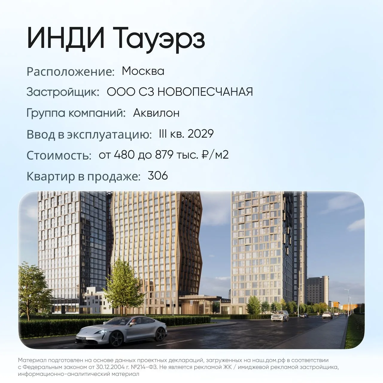 🔸ИНДИ Тауэрз — 306 квартир | от 480 до 879 тыс. ₽/м2