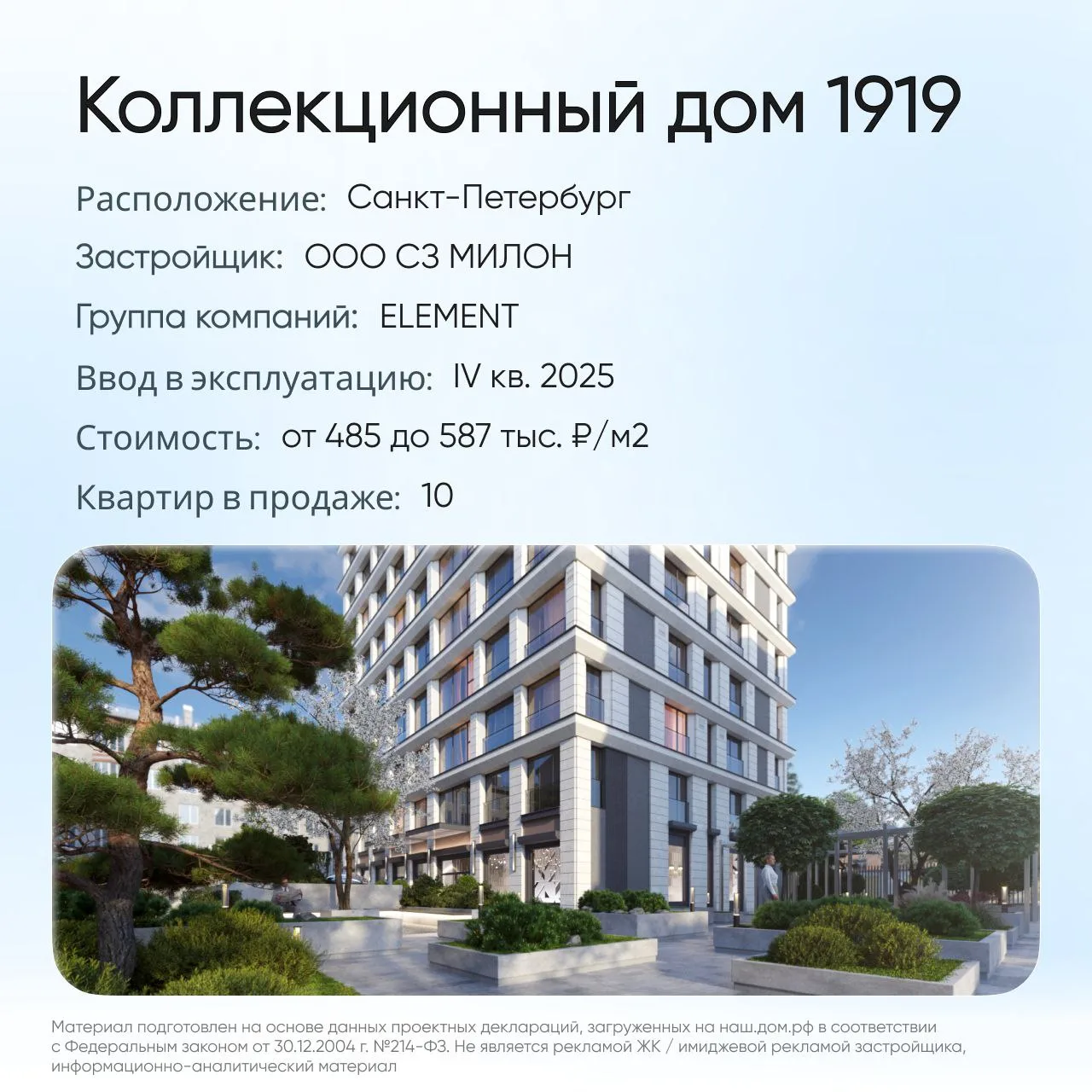 🔸Коллекционный до 1919 — 10 квартир | от 485 до 587 тыс. ₽/м2