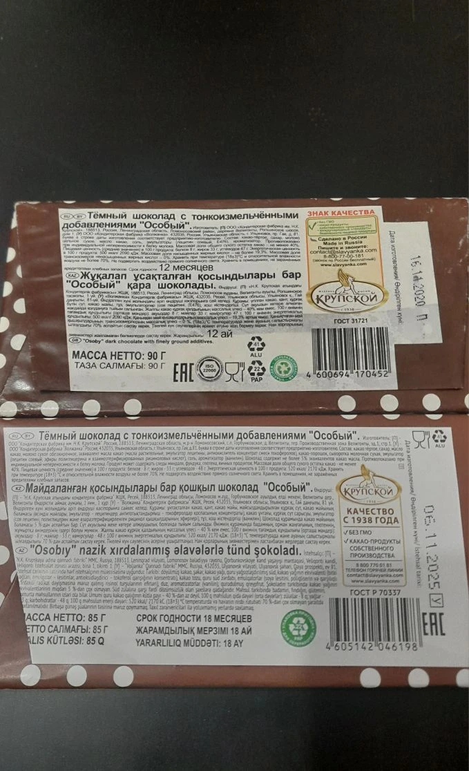 Ярчайший пример деградации трансформации продуктов за последние несколько лет. На фото одна и та же шоколадка выпуска 2020 и 2025 годов. Во-первых, более поздняя версия «похудела» на 5 граммов (но это ещё нормально, «Алёнка» похудела сразу на 15-25 граммов), во-вторых, увеличен на полгода срок годности. В составе тоже произошли изменения: если в версии 2020 года добавляли цельное сухое молоко, то в версии 2025 года оно уже обезжиренное, зато появился эквивалент какао-масла — растительные жиры. За счёт этого итоговый показатель по жиру удалось сохранить на прежнем уровне. Спасибо за это фотосравнение нашему внимательному подписчику.