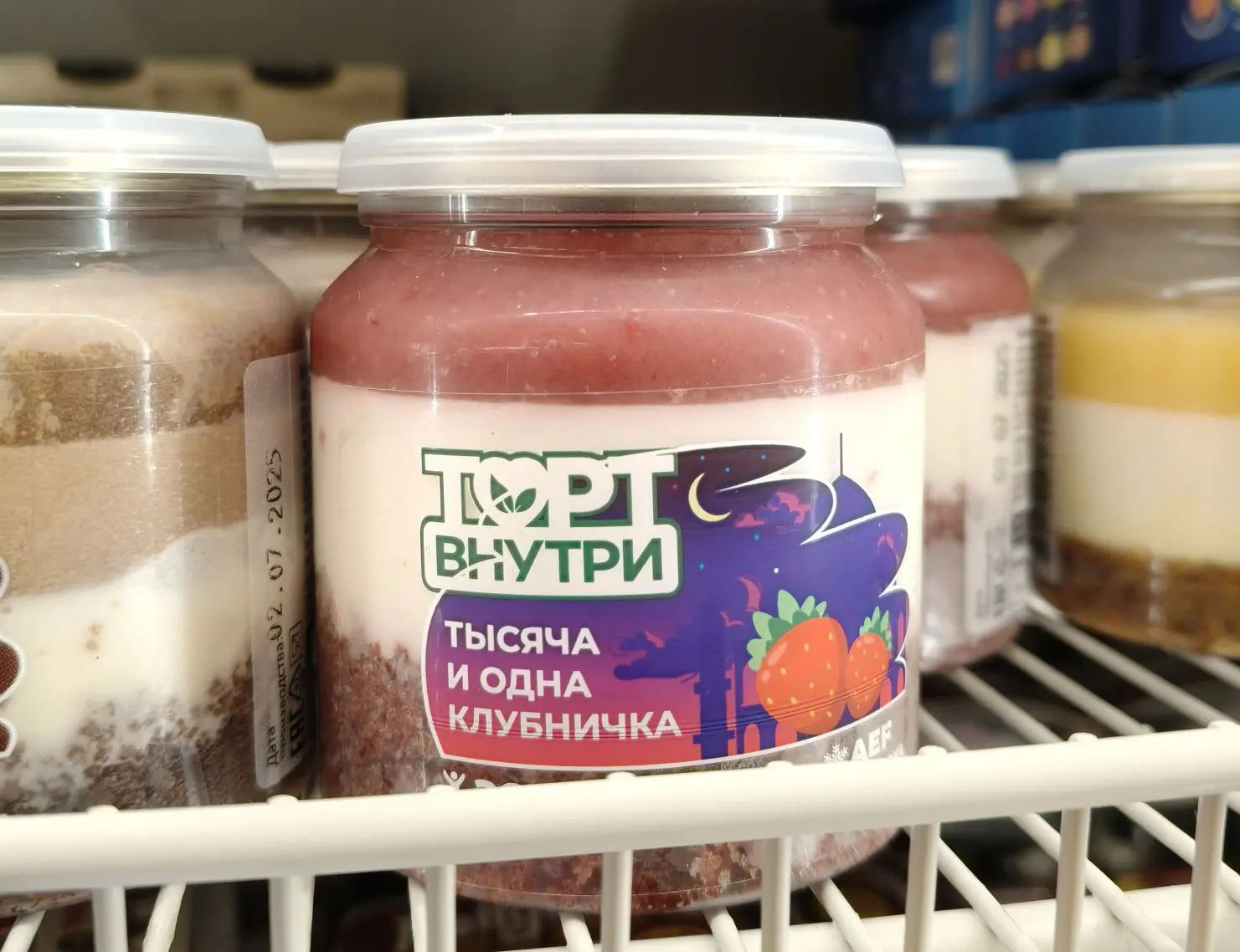 Торты в баночках наряду с бенто-тортами становятся трендом. Особенно, если их продают в замороженном виде, когда сроки хранения не поджимают. Себестоимость в этой категории может быть в ~10 раз ниже конечной цены на полке (а иногда и больше). Спасибо нашей подписчице за фото.