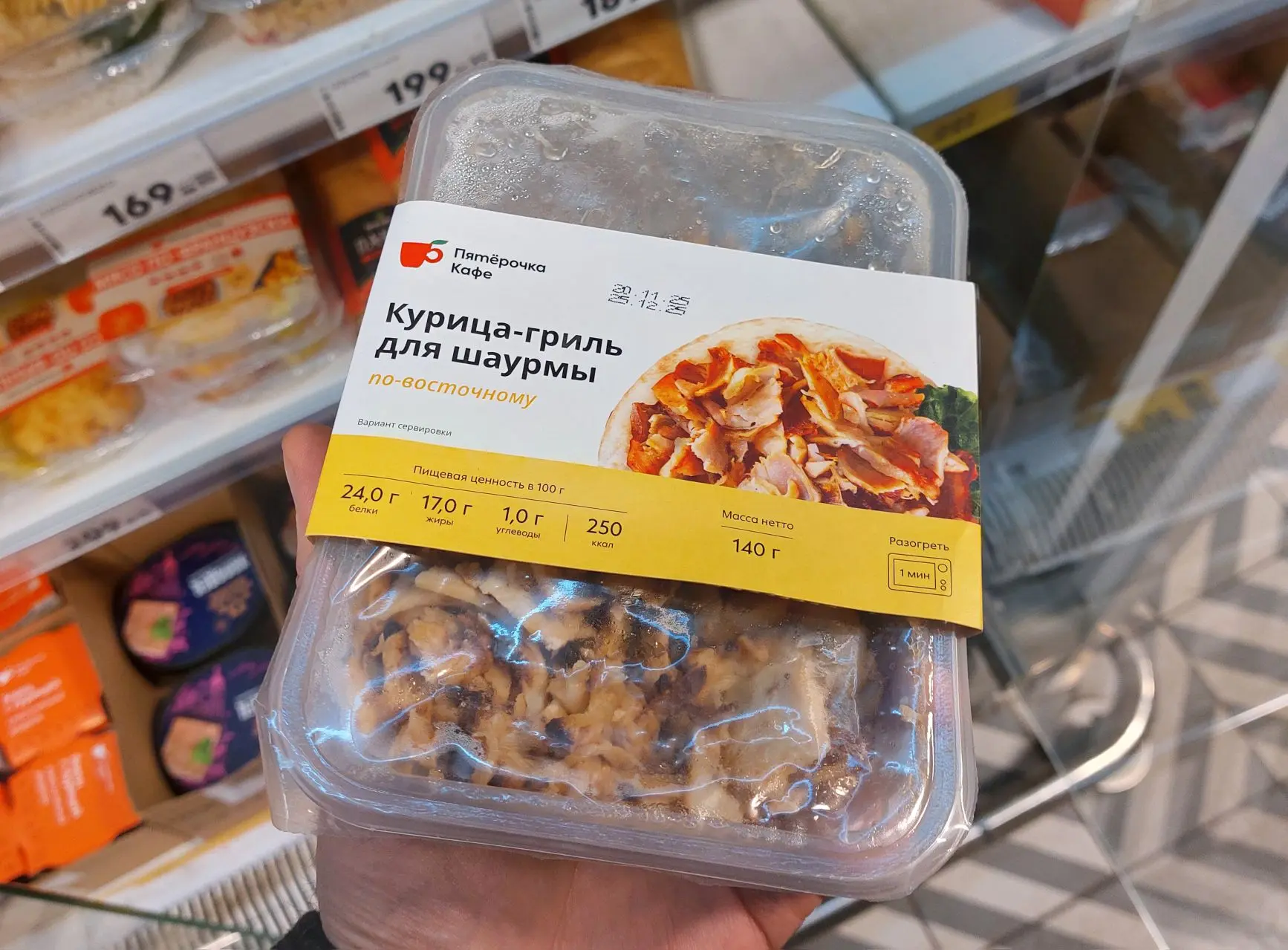Сетевая готовая еда. Теперь там даже курицу для шаурмы можно купить. ~200 рублей за 140 граммов. Неудивительно, что производители и сети идут в глубокую переработку любых продуктов, ведь тогда не надо думать о «сдерживании цен» и маржинальность совсем другая. Ну а состав этого чудесного продукта — в первом комментарии.