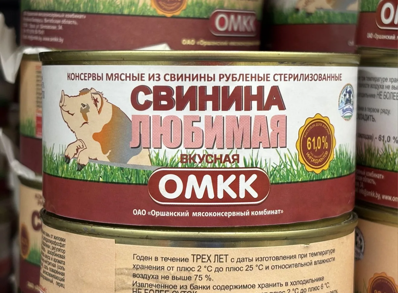 Свинина «любимая вкусная» из Беларуси. Там тоже умеют в красивые слова на этикетке. Но наличие всяких подобных слов — вернейший признак того, что производителю надо замаскировать не самые высокие характеристики продукта. Что и подтверждается составом. Это, конечно, не «тушёнка со вкусом свинины», но тем не менее.