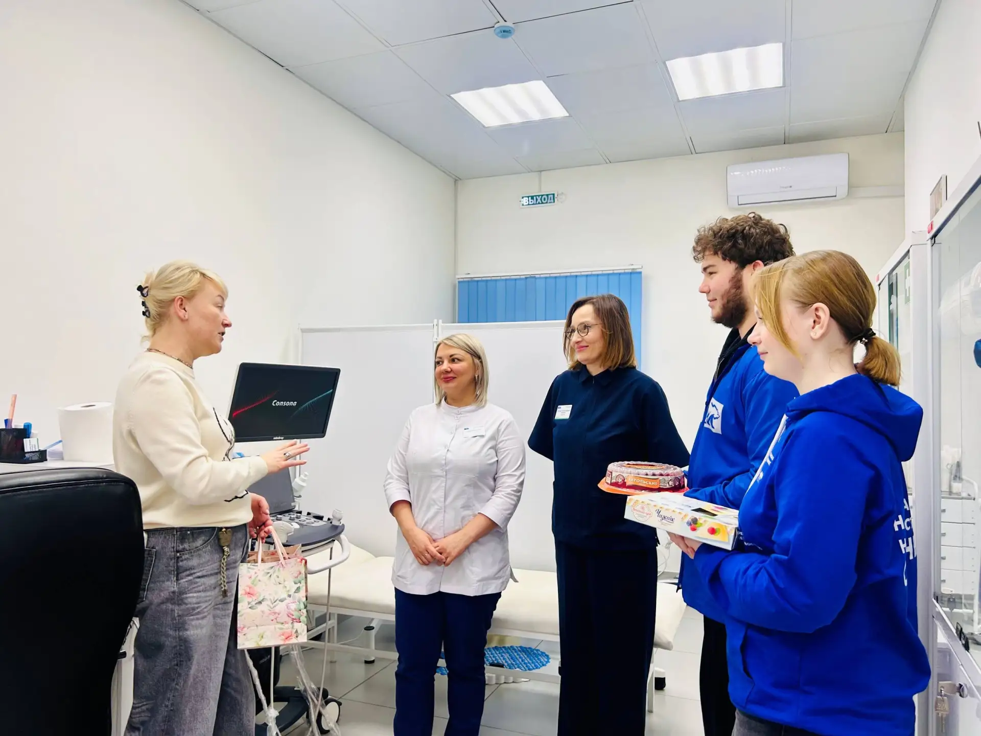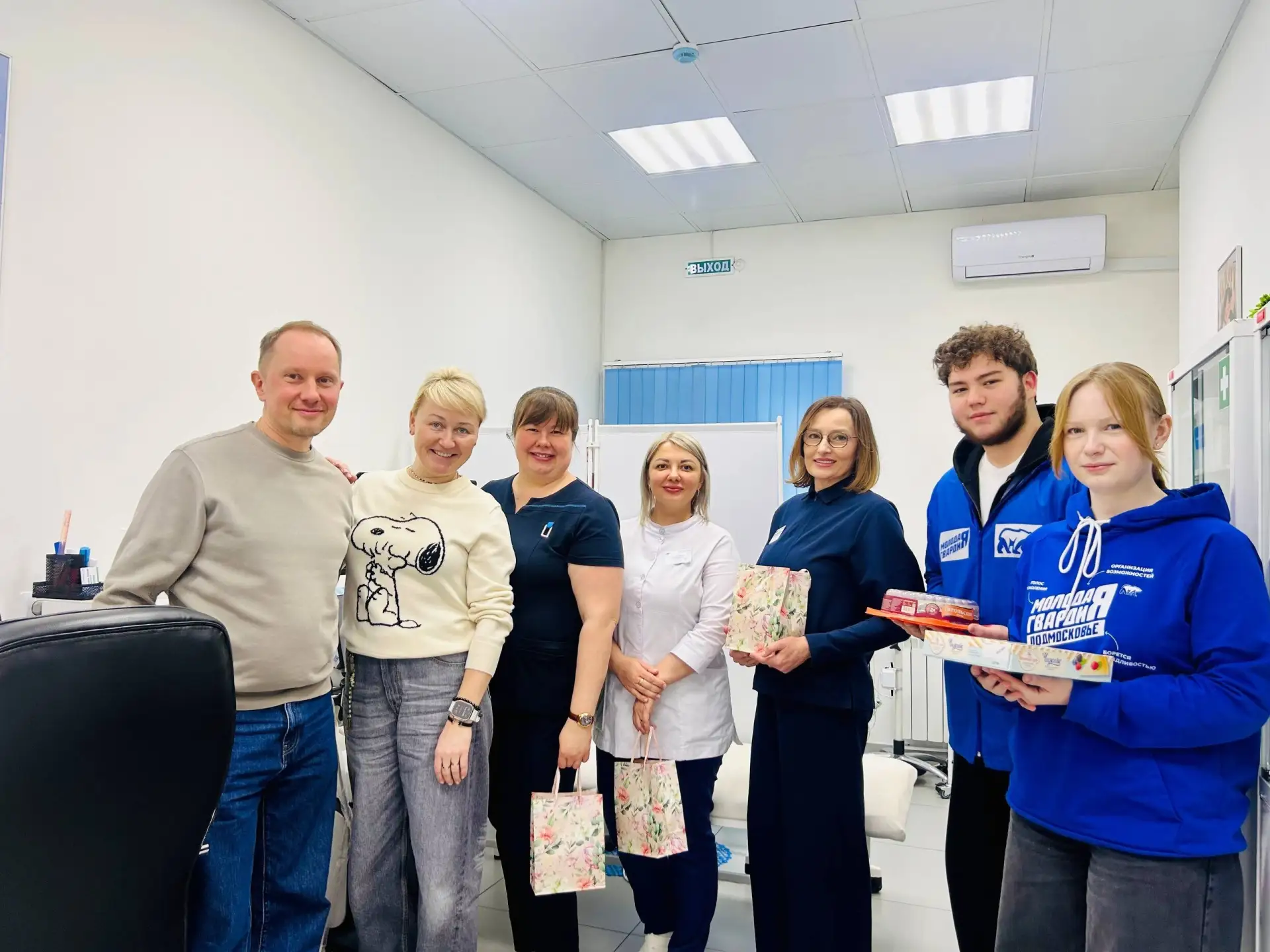 К поздравлениям присоединились активисты «Молодой Гвардии». Они поблагодарили команду «Медлабтеста» за активное участие в жизни города: несколько раз в год центр проводит социальные акции, организуя сбор и бесплатную проверку крови на жизненно важные показатели для молодежи.