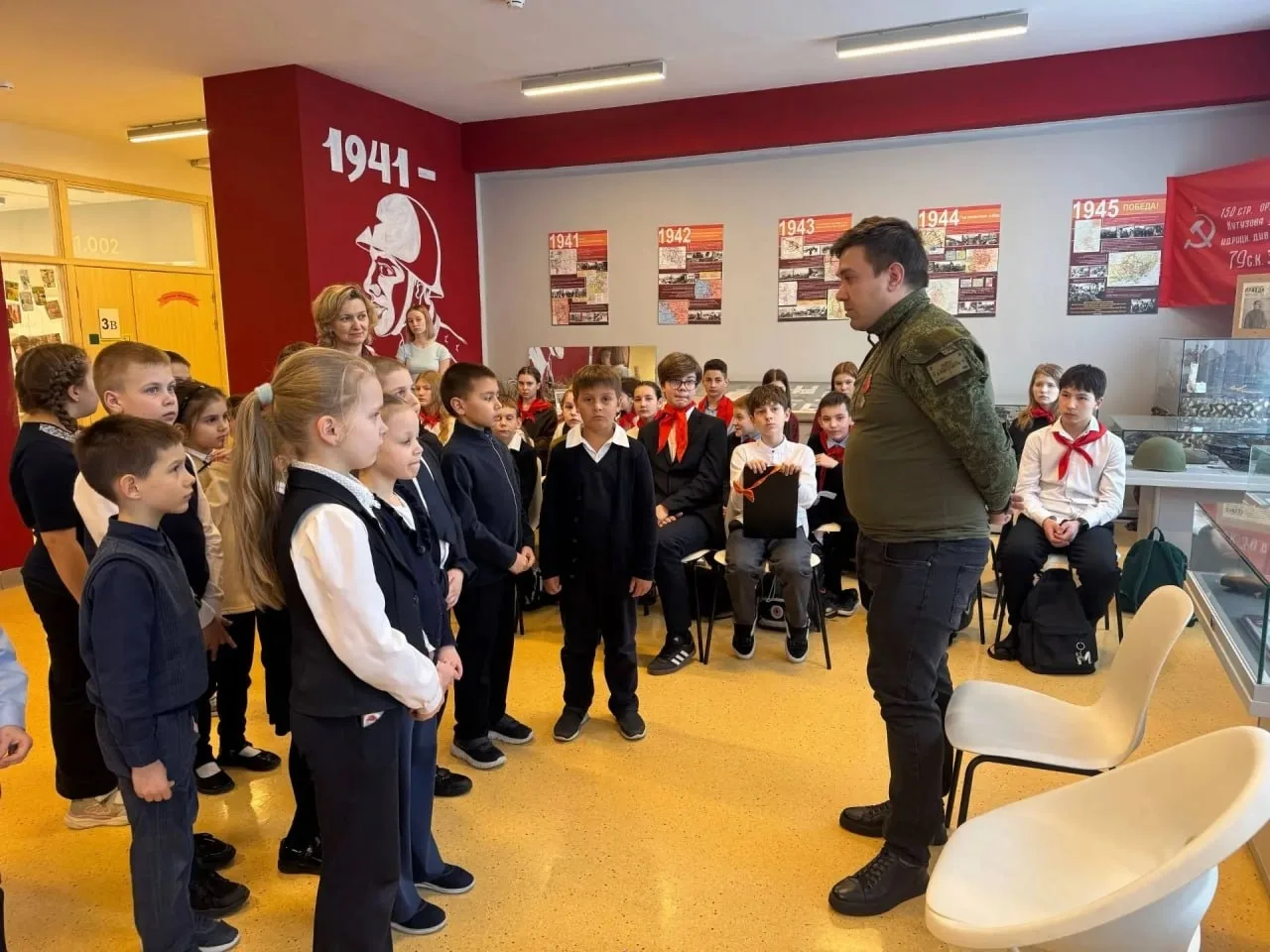 Ветеран СВО Дмитрий Павлюченков (позывной «Шатун») рассказал ребятам о фронтовых буднях, офицерской доблести и о том, как важна поддержка тыла. Школьники смогли вживую увидеть полную экипировку штурмовика и узнать о профессиональных тонкостях мастерства бойцов.