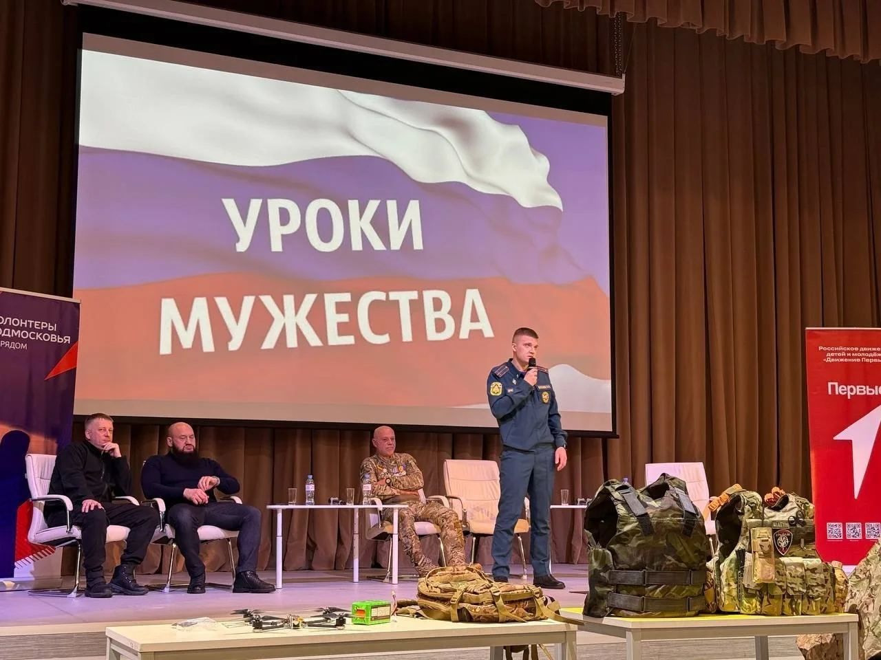 В школе №2 урок «Равнение на героев» объединил представителей Ассоциации ветеранов СВО Подмосковья, МЧС, Росгвардии и центра «Люберецкие Соборяне».