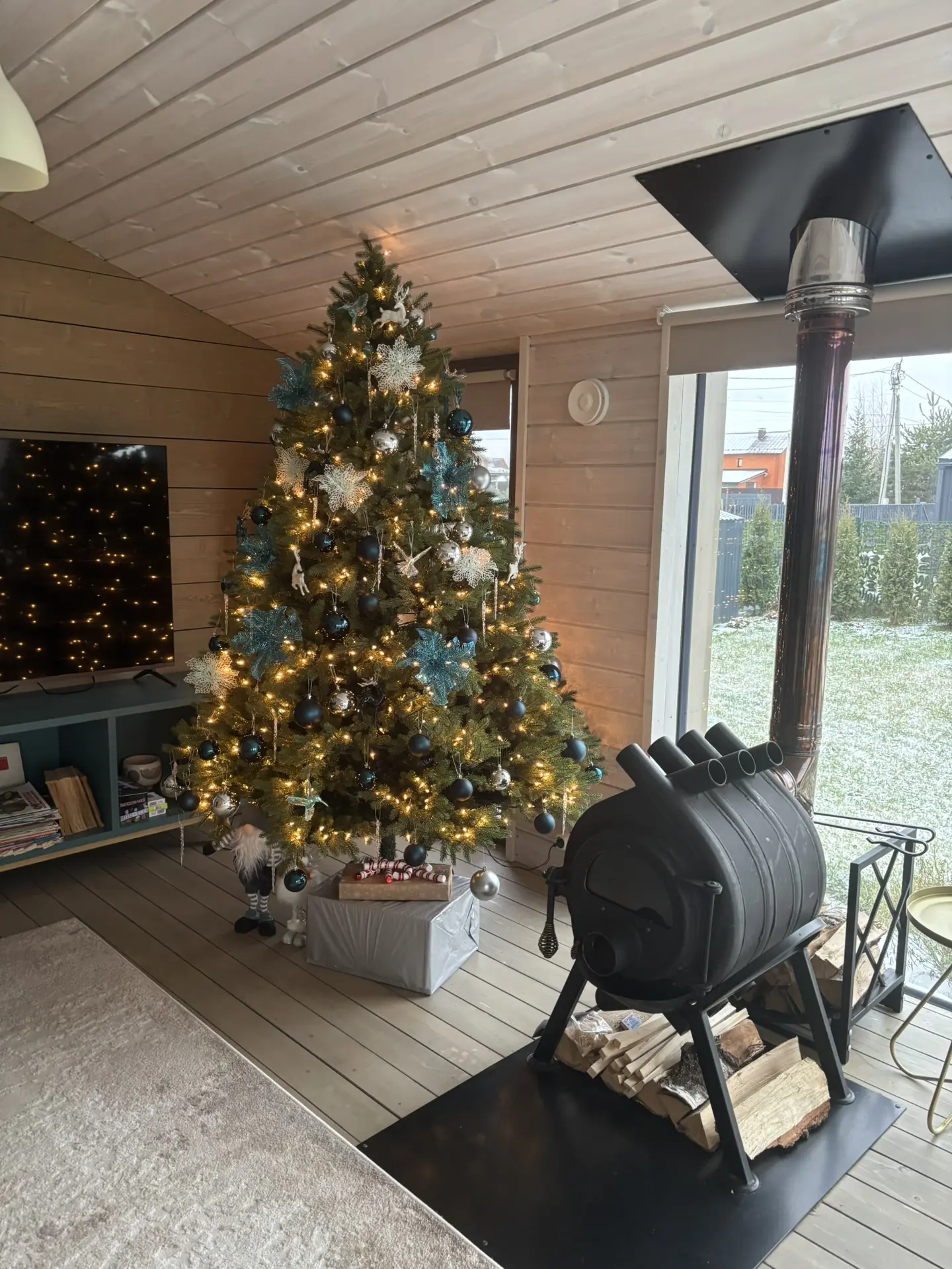 Снега в Суздале по-прежнему нет, чтобы хоть как-то создать атмосферу, поставили в домах елки😇