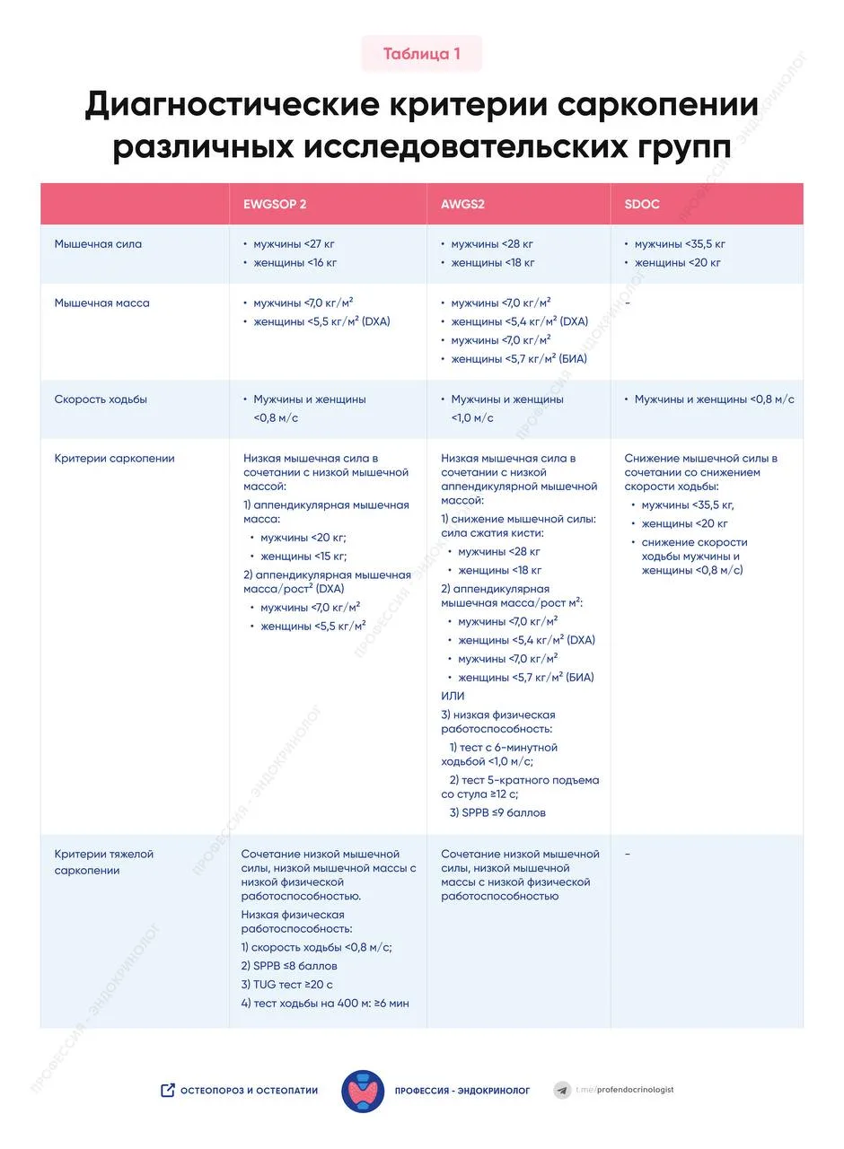 Классификация саркопении