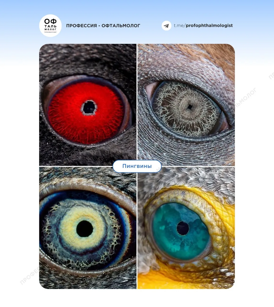 – Пингвины – плотная роговица и мощная рефракция для чёткого подводного зрения.