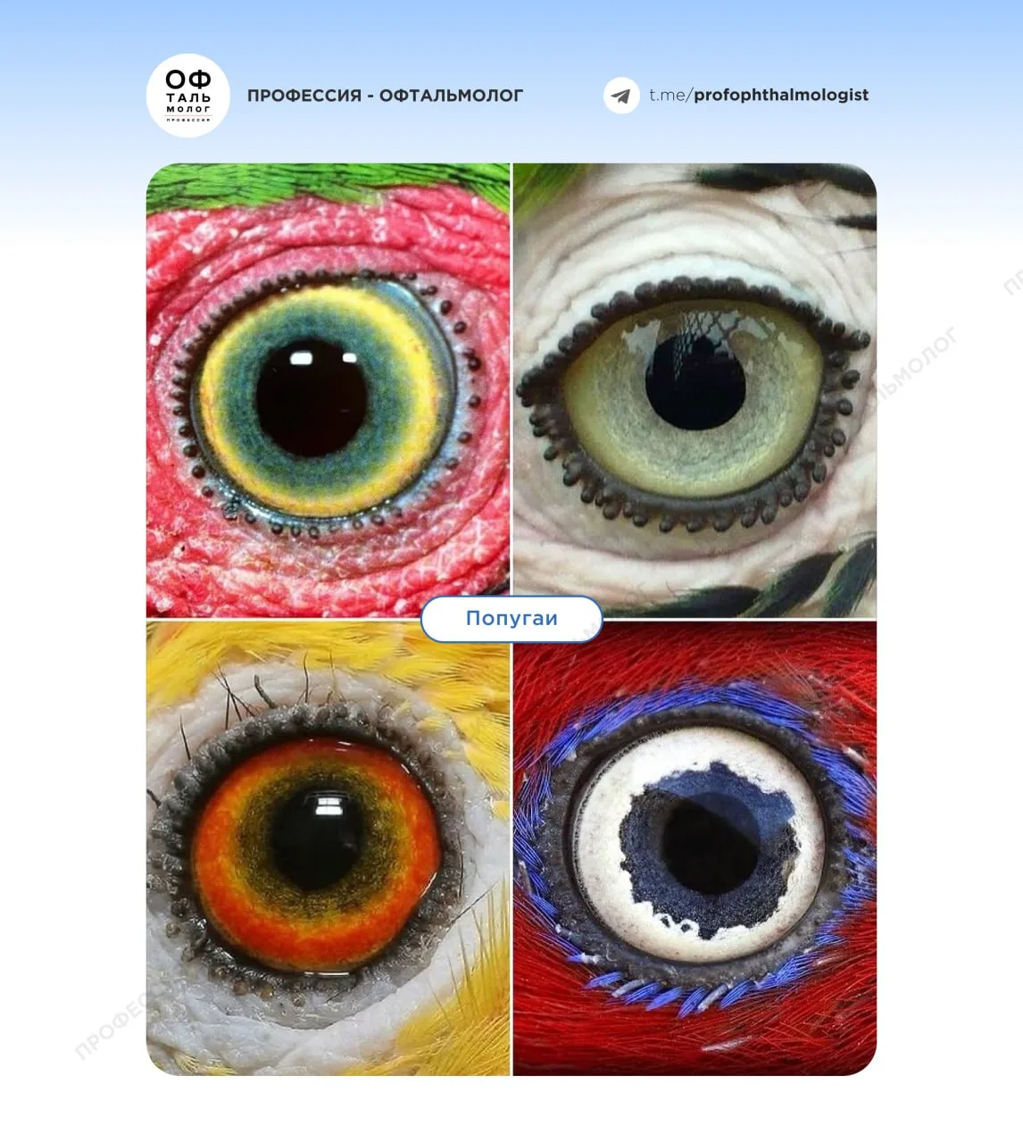 – Попугаи – яркая радужка. Это часть коммуникации и способ оценивать возраст, статус, настроение.
