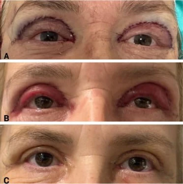 A. Женщина 62 лет через 1 час после верхней блефаропластики.