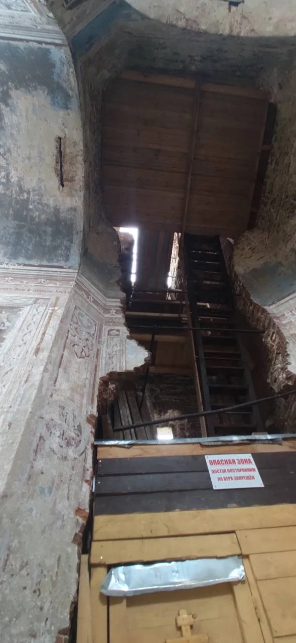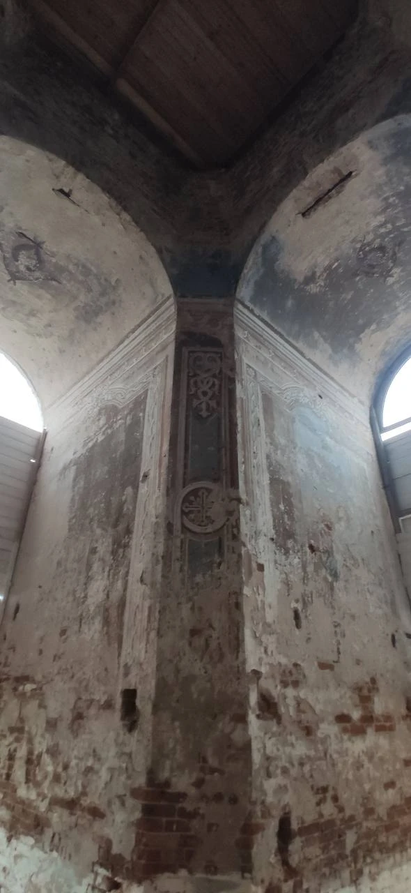 Внутри колокольни сохранились остатки фресок, а сама она находится в полуразрушенном состоянии, но именно это придаёт ей особое очарование.
