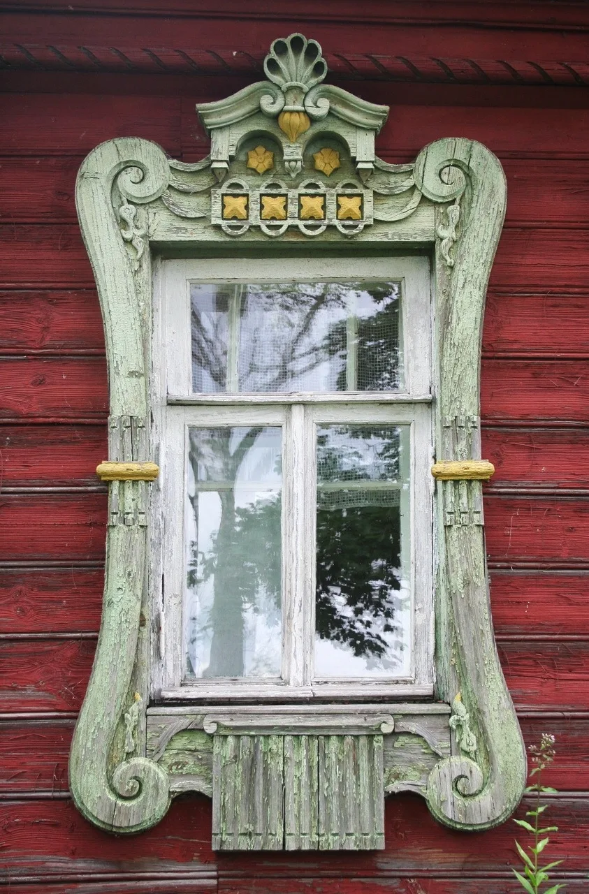 Никифорово. Дом Тарасовых с наличниками в стиле модерн. Владимирская область, Киржачский район.