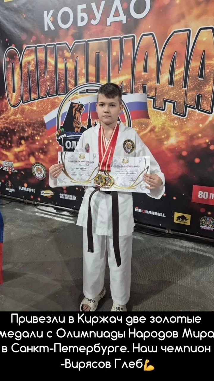 8-9 ноября в городе Санкт-Петербург прошло одно из самых красочных спортивных событий этого года Олимпиада Народов Мира! Соревнования прошли на одной из самых масштабных площадок города в Газпром Арене! 28 стран приняли участие, 5000 спортсменов, 40 видов спорта! Благодарим за Приглашение Президента СПБ Федерации ВБЕ и Кобудо Дмитриева Сергея Борисовича! От Киржачского Спортивного клуба им. М. Серегина карате выступил и показал отличные результаты: Вирясов Глеб кобудо-ката одиночные 12-13 лет 1 место 🏆🥇, карате джитсу-ката 12-13 1 место 🏆🥇. Поздравляем Глеба и его тренера Спирина Сергея Михайловича с отличными результатами !!!