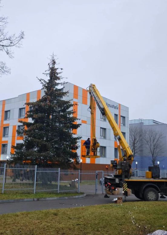 🌲Жителям Киржача Технопарк «Русклимат ИКСЭл» дарит новогоднее настроение. Специально для горожан и сотрудников Технопарка нарядили самую высокую в Киржаче зеленую красавицу – ель высотой около 10 метров. Её украсили сотней разноцветных новогодних шаров, для чего даже пришлось задействовать кран.