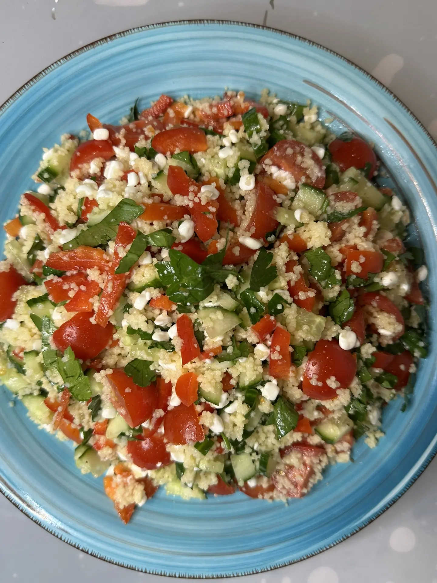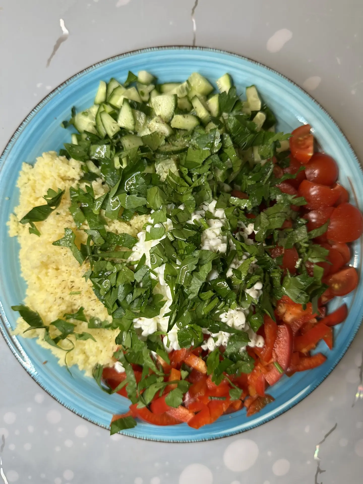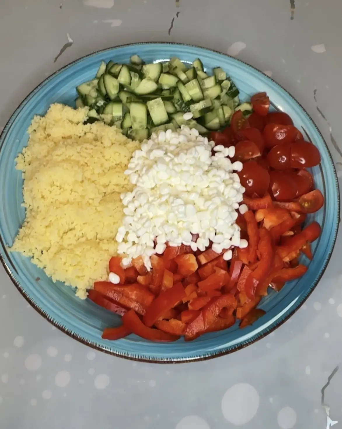 САЛАТ С КУСКУСОМ, ОВОЩАМИ И ЗЕРНЕНЫМ ТВОРОГОМ