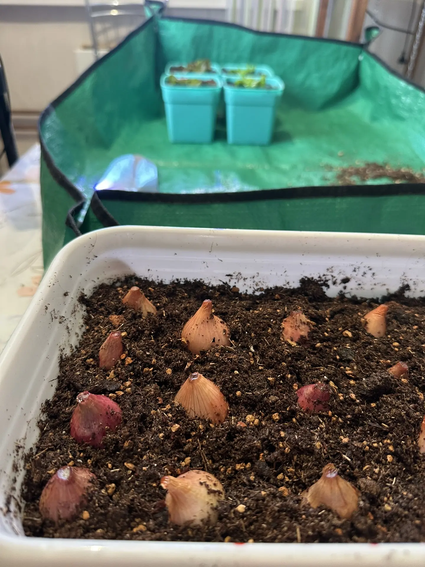 Я с утра собралась сажать лучок к новому году, но оказалось, что намешанного грунта у меня не осталось🤷♀️ а все ингредиенты на балконе при -25😃