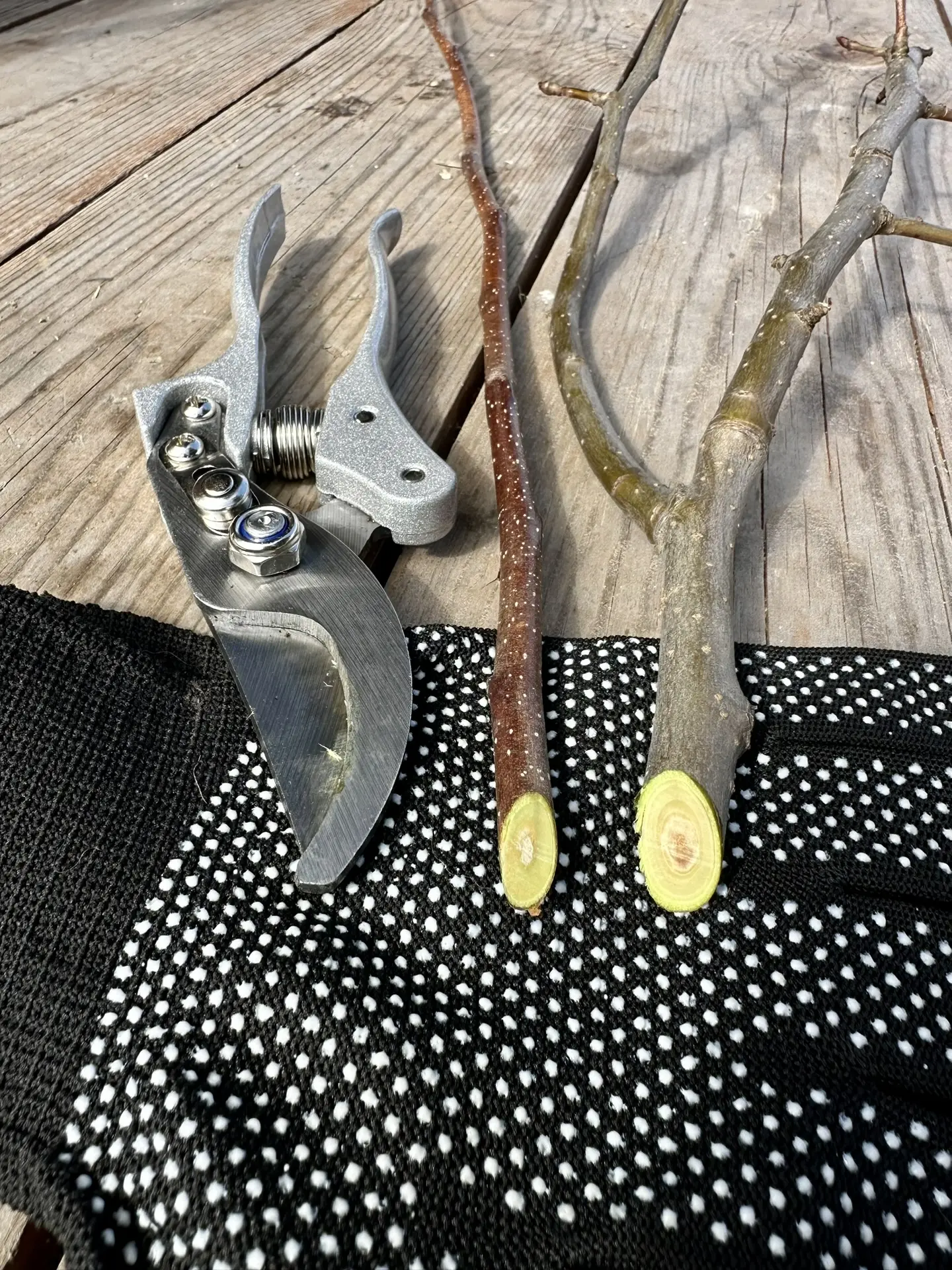 Снег под яблонями немного растаял, поэтому я решила заняться их обрезкой.