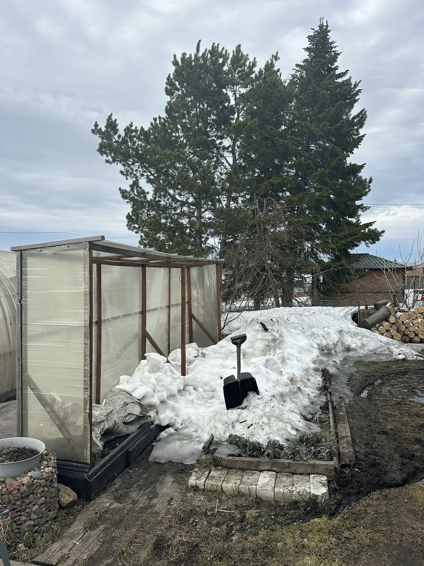 Снова вышла на борьбу со снегом. Костя начал погреб очищать от снега, если его вовремя не откидать, то вода пойдет во внутрь.