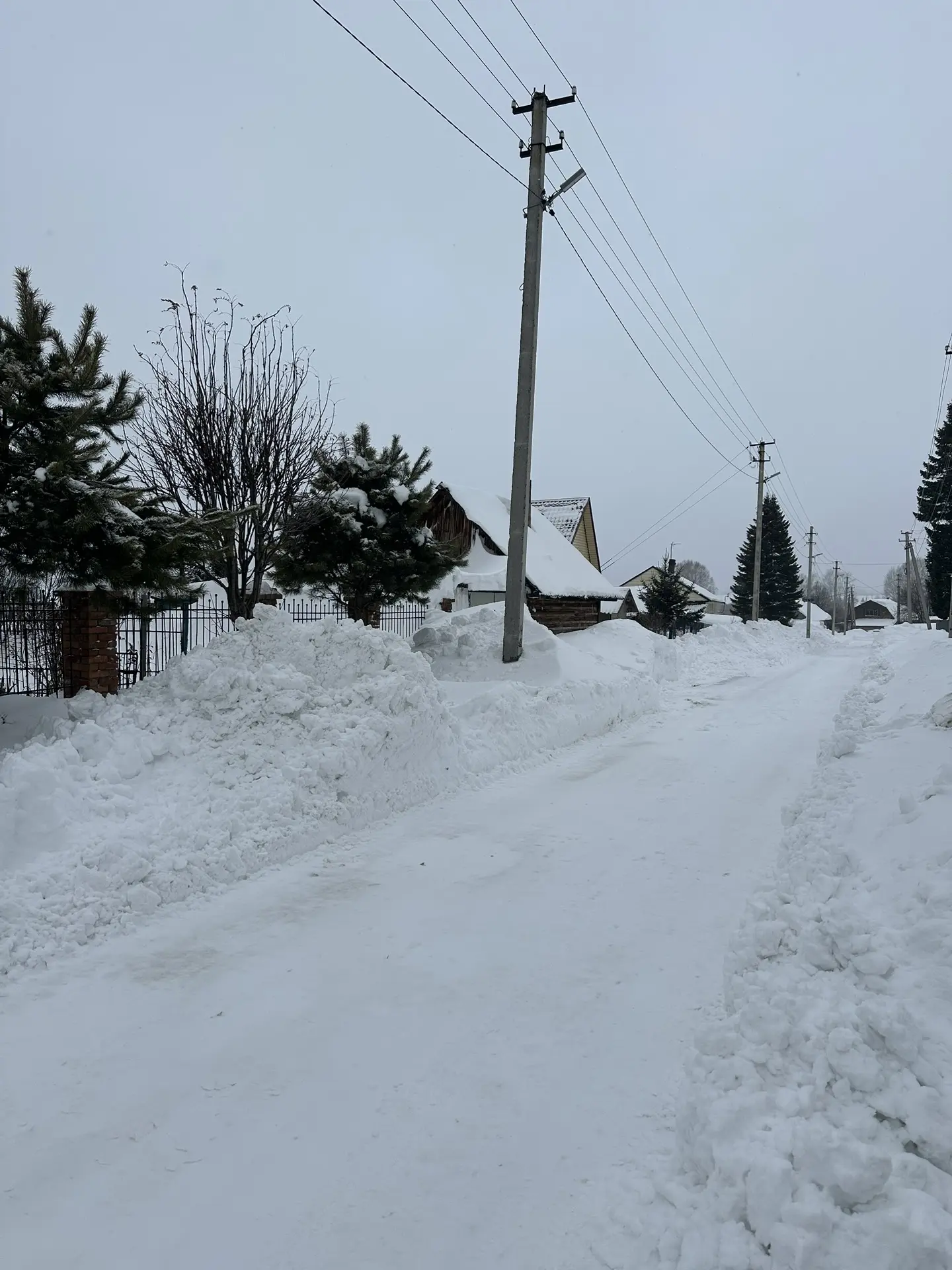 Проехал трактор и загреб мне подъезд к дому. Пришлось ставить машину в начале улицы и откидывать сырой снег с комками.