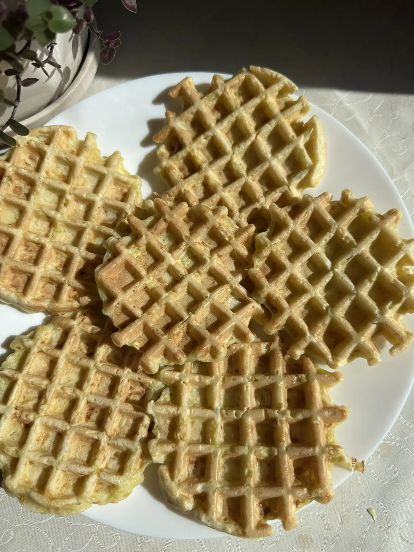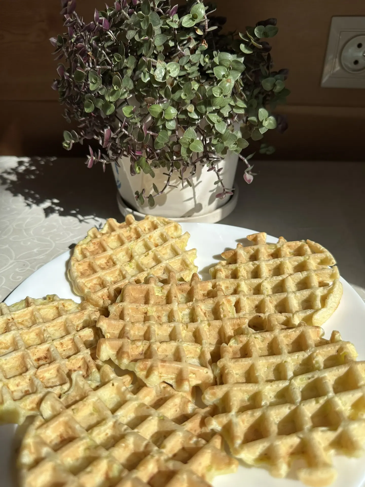 С утра ездила в город, навещала свою рассаду, а сейчас решила испечь кабачковые вафли (ну или оладьи) на вафельнице.