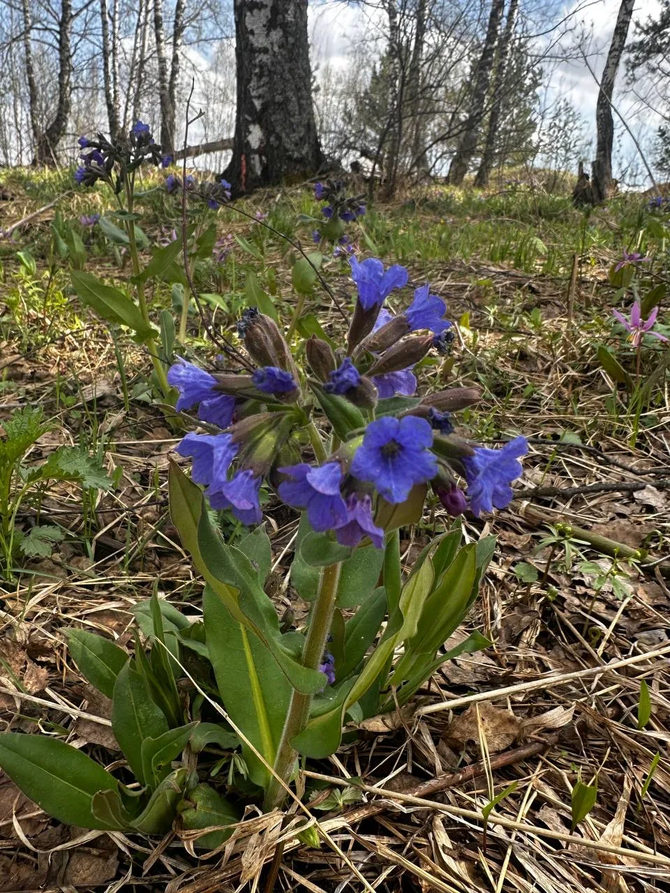 Еще снег не успеет сойти, как на полянках и в сырых ложбинках появляются розово-синие шапочки медуницы.